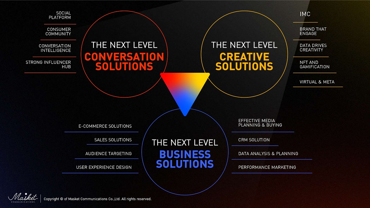 และ 3 ข้อดังกล่าวก็เป็นสิ่งที่ Masket Communications โฟกัสในปีต่อ ๆ ไป เพื่อเตรียมพร้อมสร้างสิ่งใหม่ ๆ ที่ตอบโจทย์ธุรกิจ ผ่านการนำเทคโนโลยีและความคิดสร้างสรรค์มารวมเข้าด้วยกัน
