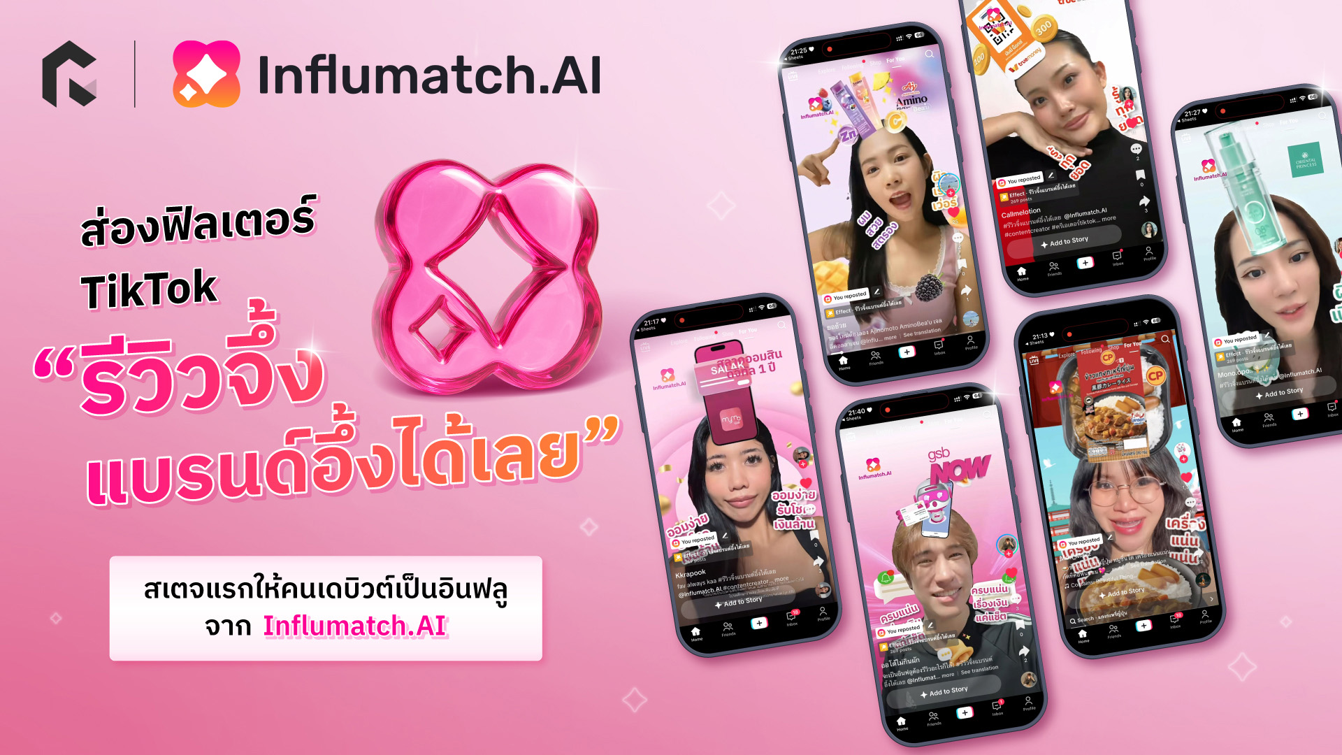 อยากเป็นอินฟลูเอนเซอร์แต่ยังไม่รู้จะเริ่มต้นยังไงตอนนี้มีเวทีให้ลองแล้ว กับแคมเปญ “#รีวิวจึ้งแบรนด์อึ้งได้เลย” บนฟิลเตอร์ TikTok ที่ออกแบบมาให้โชว์สกิลรีวิวแบบจัดเต็ม เพียงแค่มีสมาร์ตโฟนและ TikTok ก็เริ่มได้ทันที โอกาสดี ๆ จาก ‘Influmatch.AI’ แพลตฟอร์มจับคู่อินฟลูเอนเซอร์กับแบรนด์ที่ RAiNMaker อยากชวนทุกคนเข้าร่วม