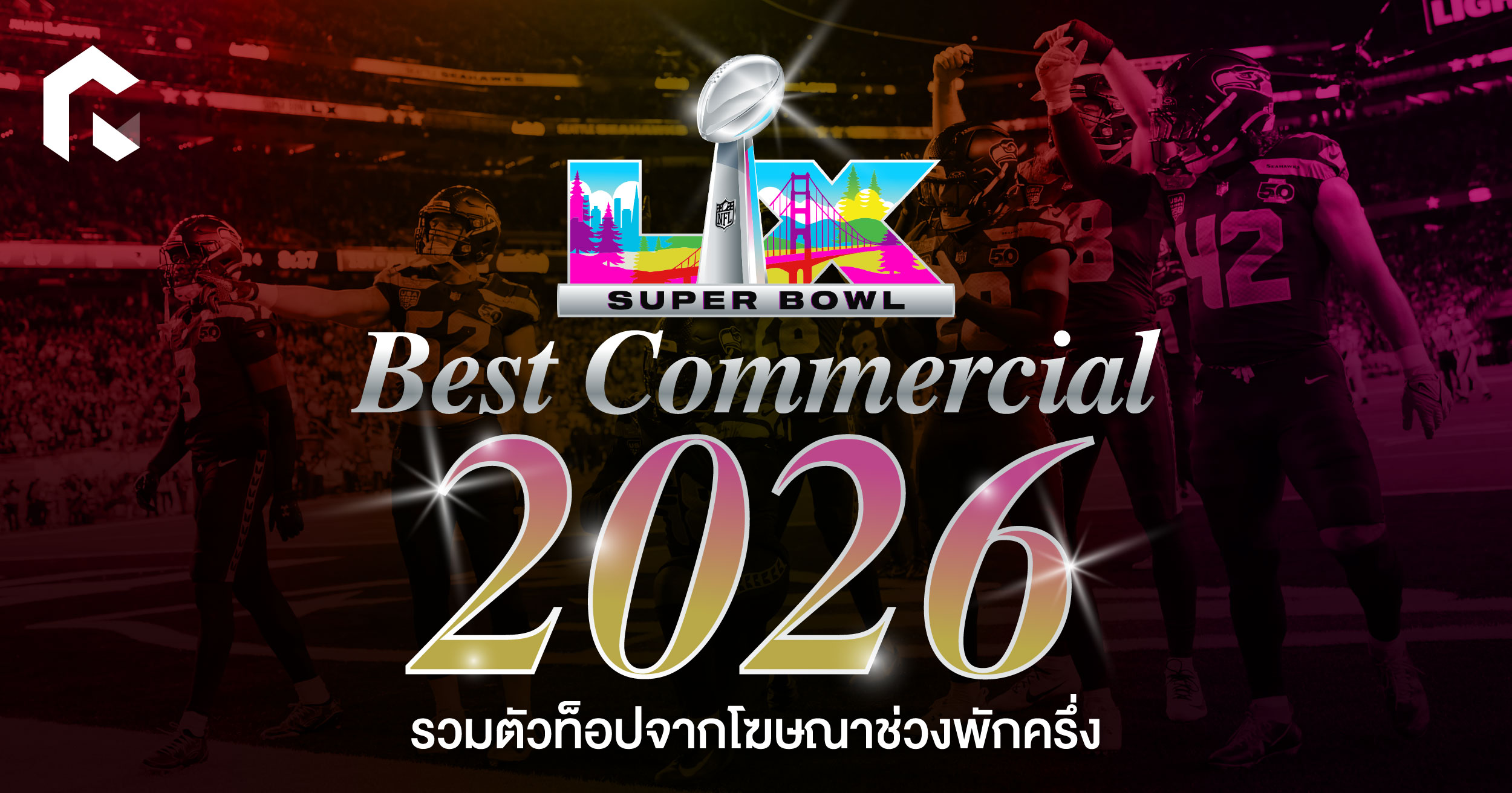 Super Bowl LIX 2026 ฤดูการแข่งขันอเมริกันฟุตบอลอาชีพ NFL (National Football League) กลับมาพร้อมกับความเข้มข้นเดิม! ที่ไม่ใช่แค่แมทช์กีฬา แต่เป็นความตึงเครียดที่ดกระตุ้นให้ผู้โฆษณาหลายรายเลือกที่จะเล่นอย่างปลอดภัยมากกว่าทุกปี ทำให้ในปีนี้เน้นไปที่การโชว์หน้าดาราชื่อดังมากกว่าพล็อตที่กล้าเสี่ยงแบบเดิม