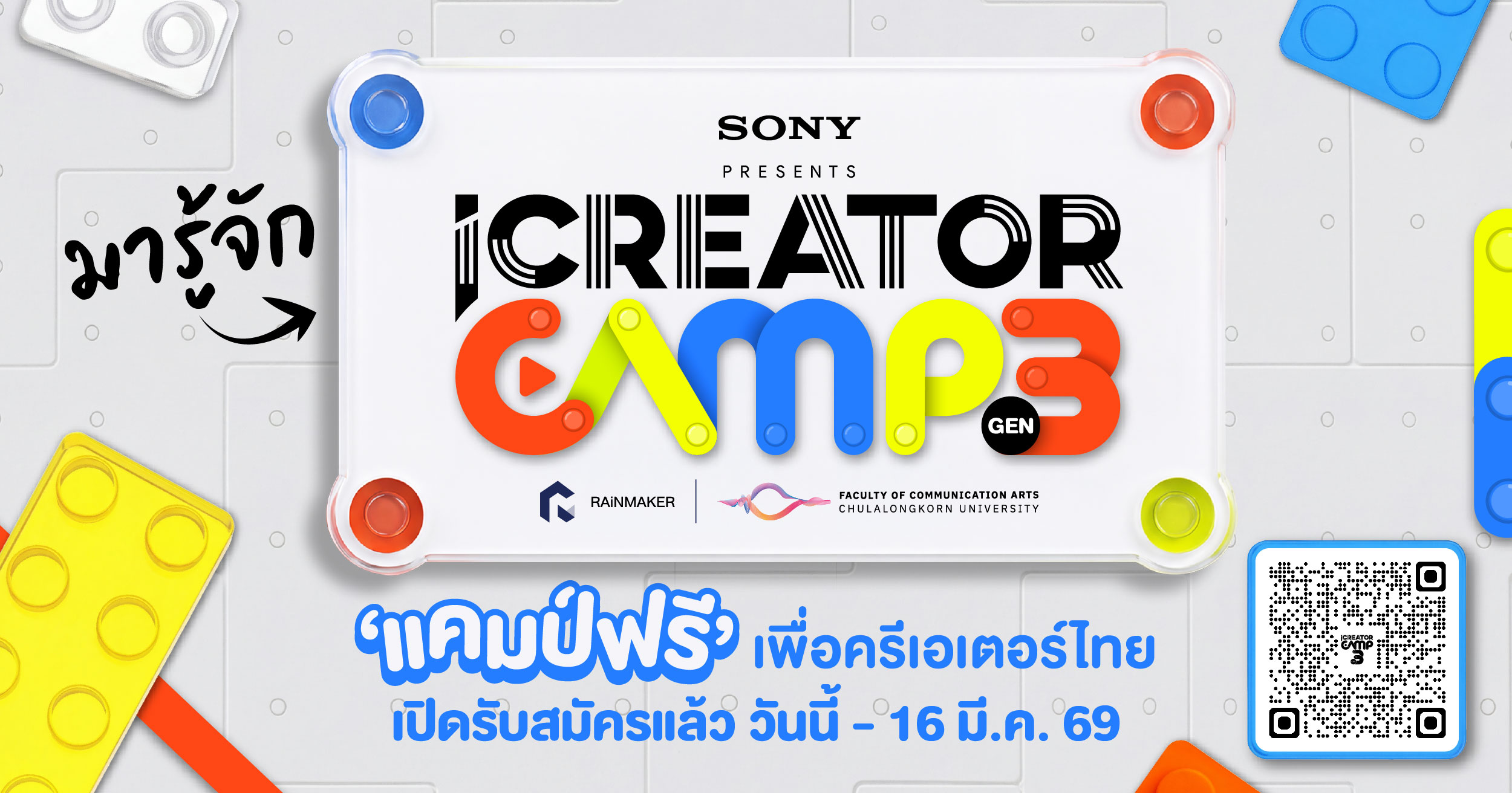 สำหรับใครที่อยากมาอัปสกิลการทำคอนเทนต์ แต่ยังไม่รู้ว่าครีเอเตอร์ไทยก็มีแคมป์ฟรี! ทีมงาน RAiNMaker ขอพาไปทำความรู้จัก ‘iCreator Camp Gen 3 Presented by Sony’ กับธีม ‘Ready to Scale’ กันอีกครั้ง ว่าเราคือ ‘แคมป์ฟรีเพื่อครีเอเตอร์ชาวไทย’ ที่อยากเห็นวงการครีเอเตอร์ไทยเติบโตไปได้ไกลมากยิ่งขึ้น ผ่านเวิร์กชอปสุดเข้มข้นที่จะมาขัดเกลาคอนเทนต์ให้คมและครบมากกว่าที่เคย จากเนื้อหาที่คัดมาเพื่อเหล่าครีเอเตอร์ทุกคน ให้ได้เรียนกันแบบจุใจกับครีเอเตอร์ตัวท็อปมากกว่า 20+ ท่าน