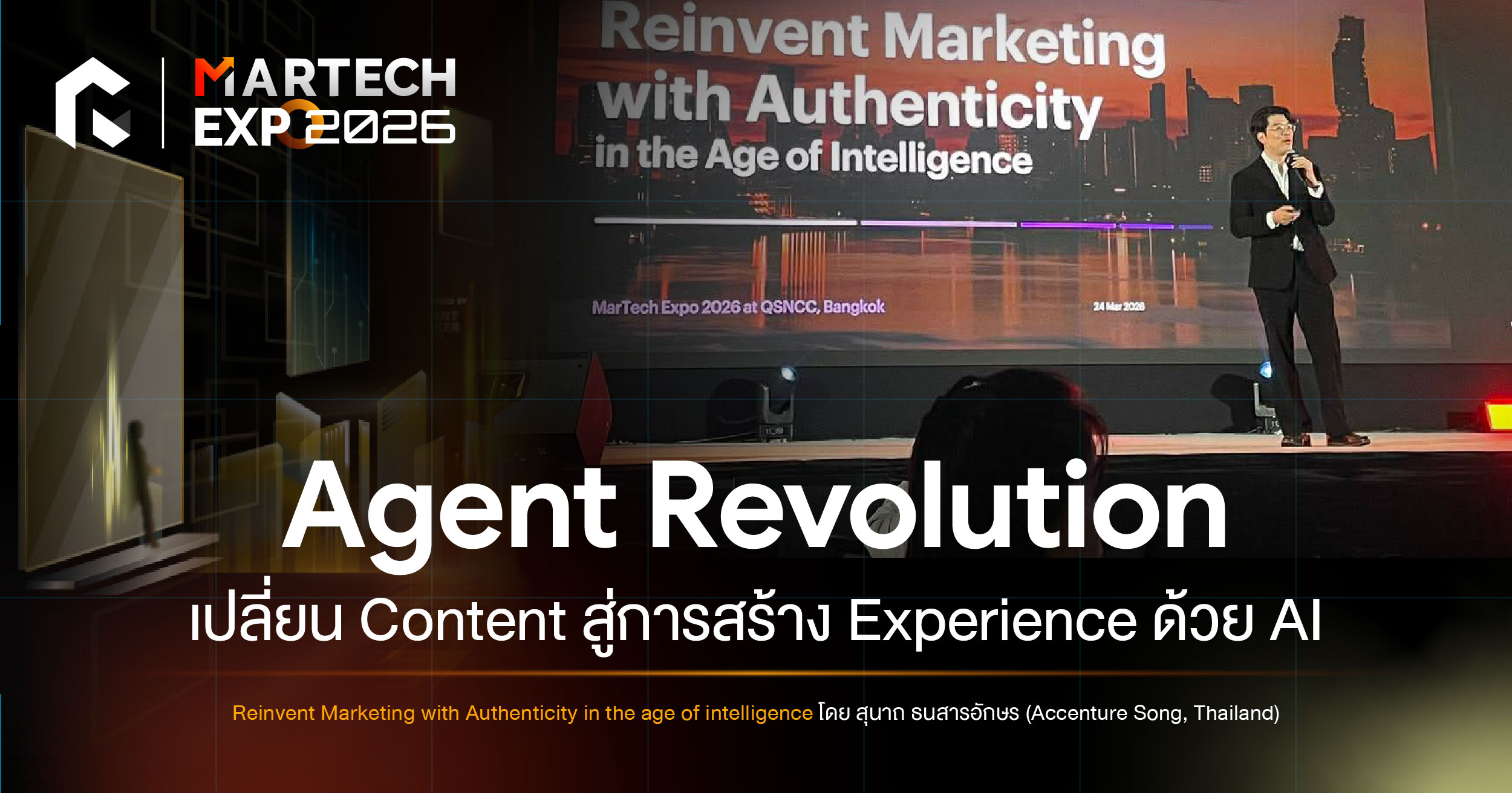 Agent Revolution เปลี่ยน Content สู่การสร้าง Experience ด้วย AI Sessions: Reinvent Marketing with Authenticity in the age of intelligence โดย สุนาถ ธนสารอักษร (Accenture Song, Thailand) จากงาน Marketing Technology & Innovation Expo 2026
