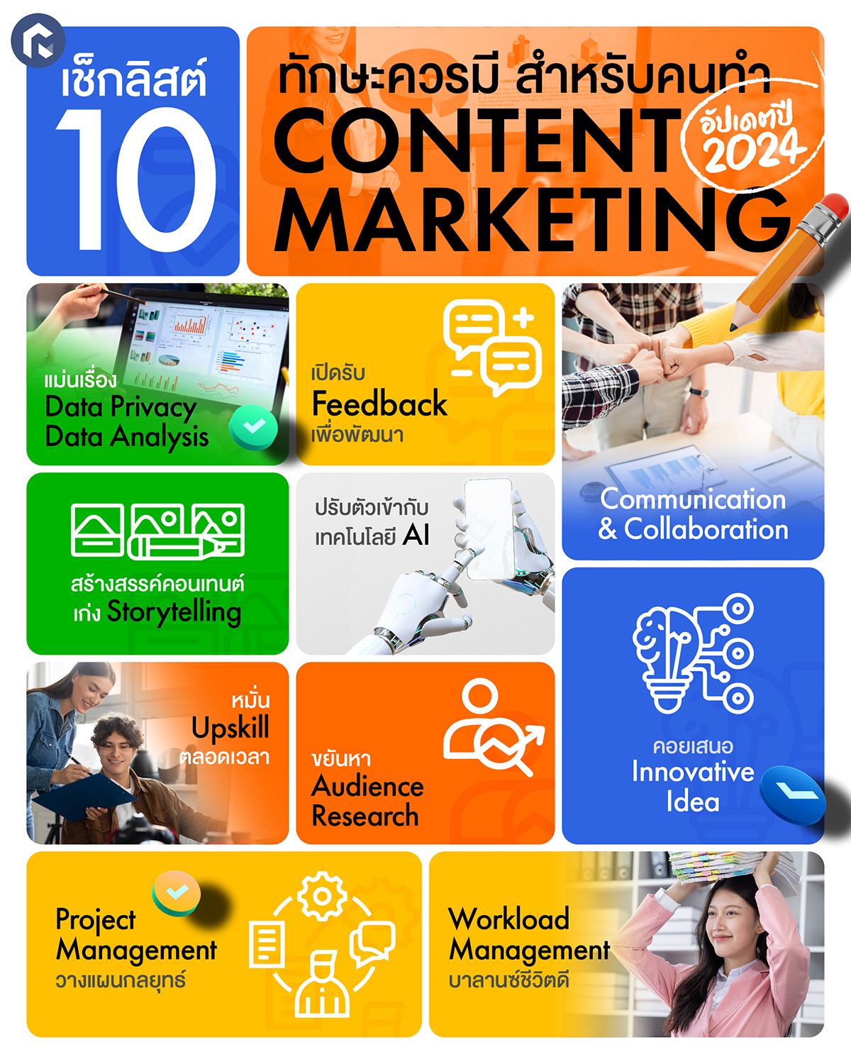 ไม่ใช่แค่เรื่อง AI เท่านั้น แต่ไม่ว่าจะเป็นทักษะ Hard Skills หรือ Soft Skills ก็ล้วนเป็นทักษะที่ต้องมีการพัฒนาด้วยกันทั้งนั้น ดังนั้นเราเลยรวม 10 ทักษะสำคัญสำหรับคนในแวดวง Content Marketing มาให้เช็กลิสต์กันว่ายังขาดอะไรกันหรือเปล่า เพื่อที่จะได้นำไปเสริมทักษะอัปสกิลให้ทำงานต่อไปได้ลื่นไม่มีสะดุด!