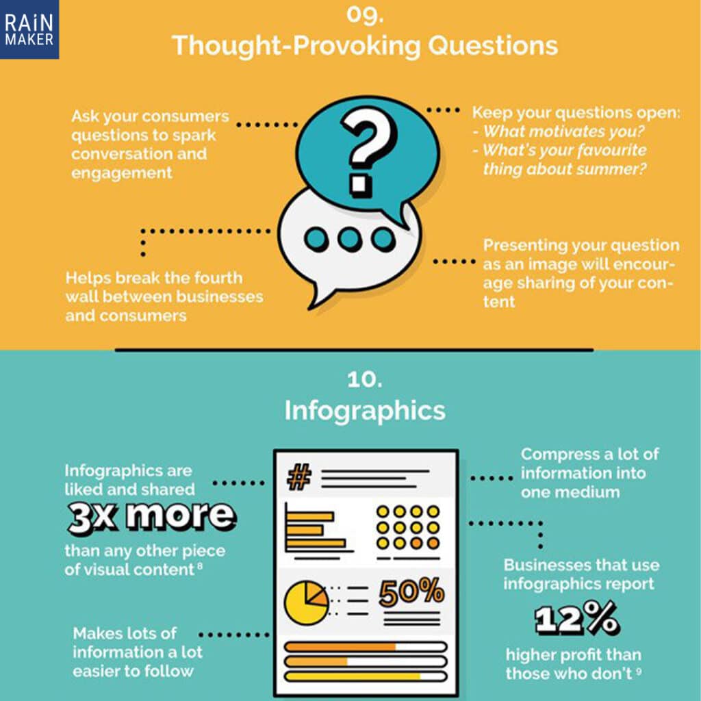 คอนเทนต์แบบ Infographic เป็นอะไรที่ได้รับความนิยมสูงมากๆ มียอดไลก์และแชร์มากกว่าคอนเทนต์แบบปกติถึง 3 เท่า ซึ่งองค์กรใดที่ใช้สื่อแบบ Infographic จะเติบโตมากกว่าองค์กรที่ไม่ได้ใช้ถึง 12% ด้วยกัน