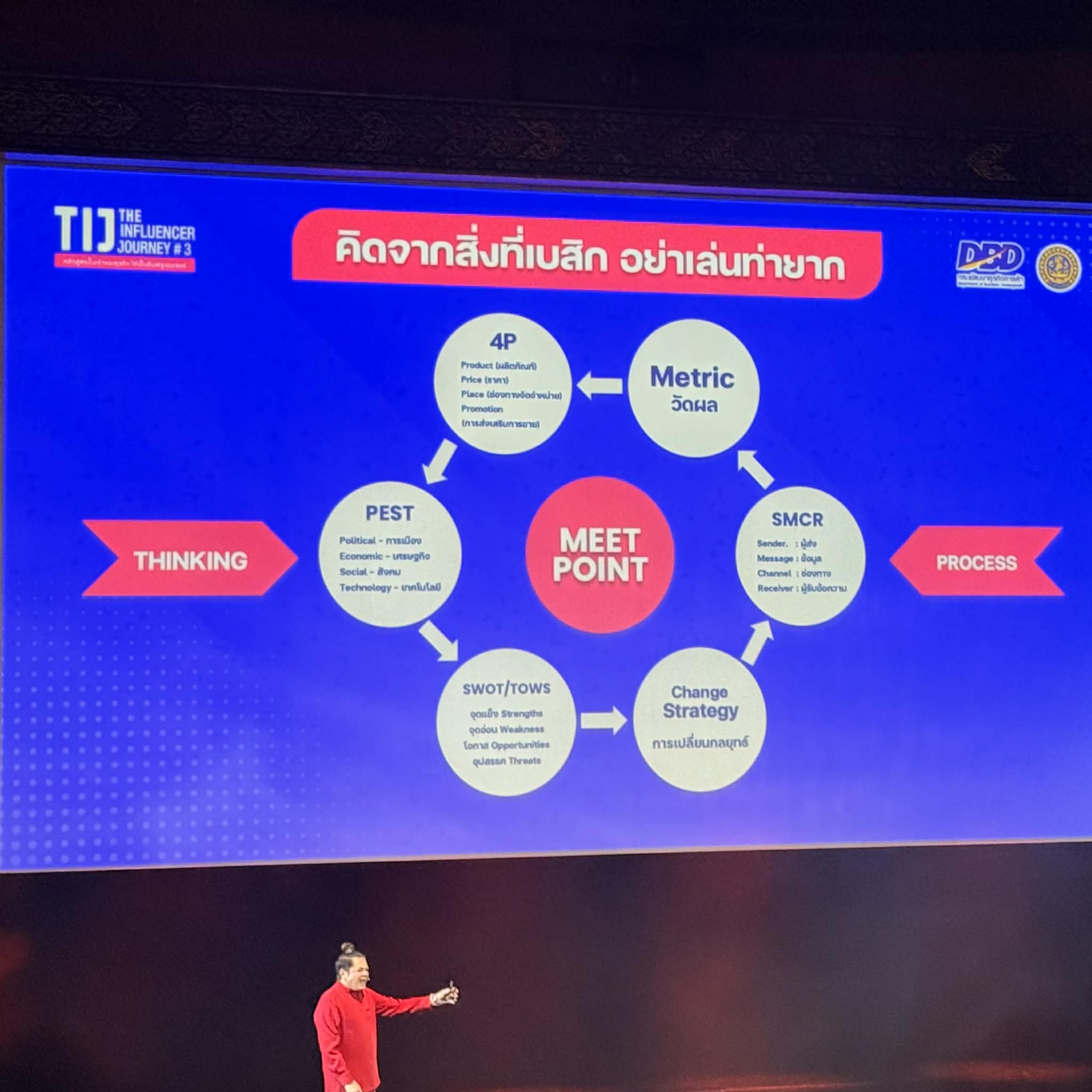 - หาลูกค้าให้เจอ ว่าใครคือลูกค้าเรา เมื่อเจอแล้วแค่กระซิบเบา ๆ ก็ได้ยิน โดยวิธีการหา Meet Point หรือพฤติกรรมของผู้บริโภค ซึ่งจำเป็นหามาให้ได้มากที่สุด
