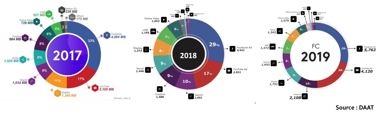 ปัจจุบันตลาด Influencer ยังคงเป็นกระแสที่มาแรงและมีอนาคตอย่างสดใส เนื่องจาก Social Media และความสามารถในการผลิต Content และการเข้าถึงอินเทอร์เน็ตที่ง่ายขึ้น ในขณะที่แบรนด์เองในปัจจุบันยากที่จะเข้าถึงคนทำคอนเทนต์ทำให้ตลาดนี้ยังเติบโตอย่างต่อเนื่องเรื่อย ๆ ซึ่งสถิติที่น่าสนใจที่ได้รวบรวมมาโดย DAAT ก็มีดังเช่นในภาพ