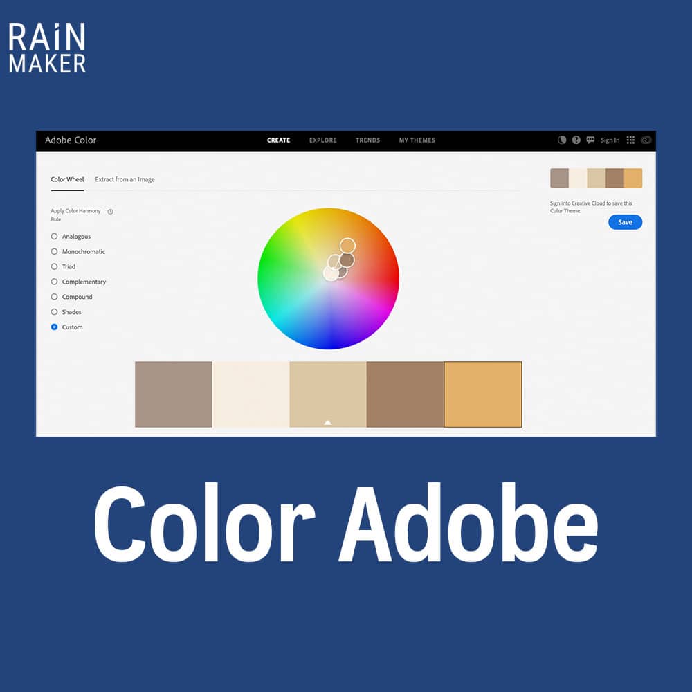1. Color Adobe เป็นเว็บไซต์จากบริษัท Adobe ที่เรียกได้ว่าครบเครื่องจบได้ในที่เดียว มีจำนวนสีให้เลือกหลากหลายเฉด เราสามารถกำหนดได้ว่าต้องการชุดสีประเภทไหน และมีแนะนำโทนสีใกล้เคียงเพื่อให้เราได้นำมาเปรียบเทียบ ทำให้เราได้เห็นสีที่ชัดเจนมากยิ่งขึ้น