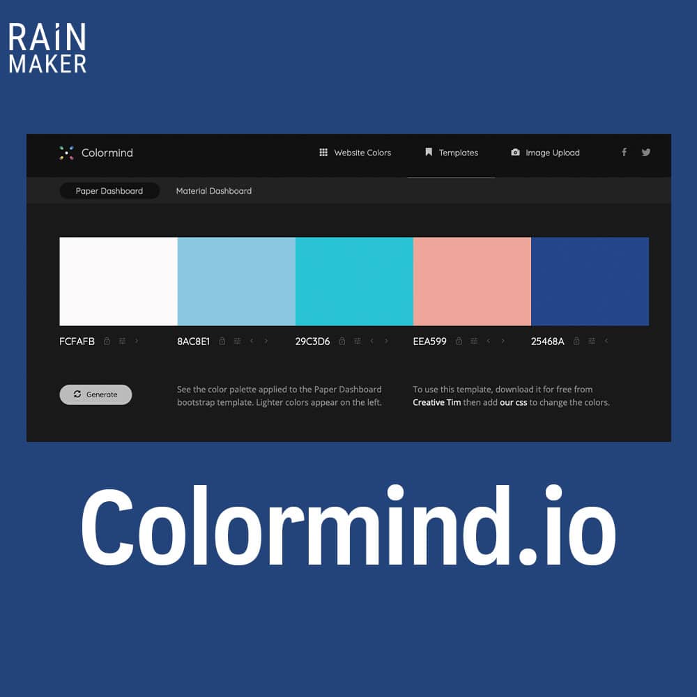 2. Colormind.io เว็บไซต์นี้ มีจุดน่าสนใจคือ มีระบบที่ฉลาดสามารถจับคู่สีและสร้างโมเดลงานต่างๆ ออกมาได้อย่างง่ายดายและรวดเร็ว ที่สำคัญคือใช้งานฟรี! นอกจากนี้ยังมีงานออกแบบเป็นตัวอย่าง ให้เราสามารถเลือกดู เพื่อเป็นไอเดียได้อีกด้วย