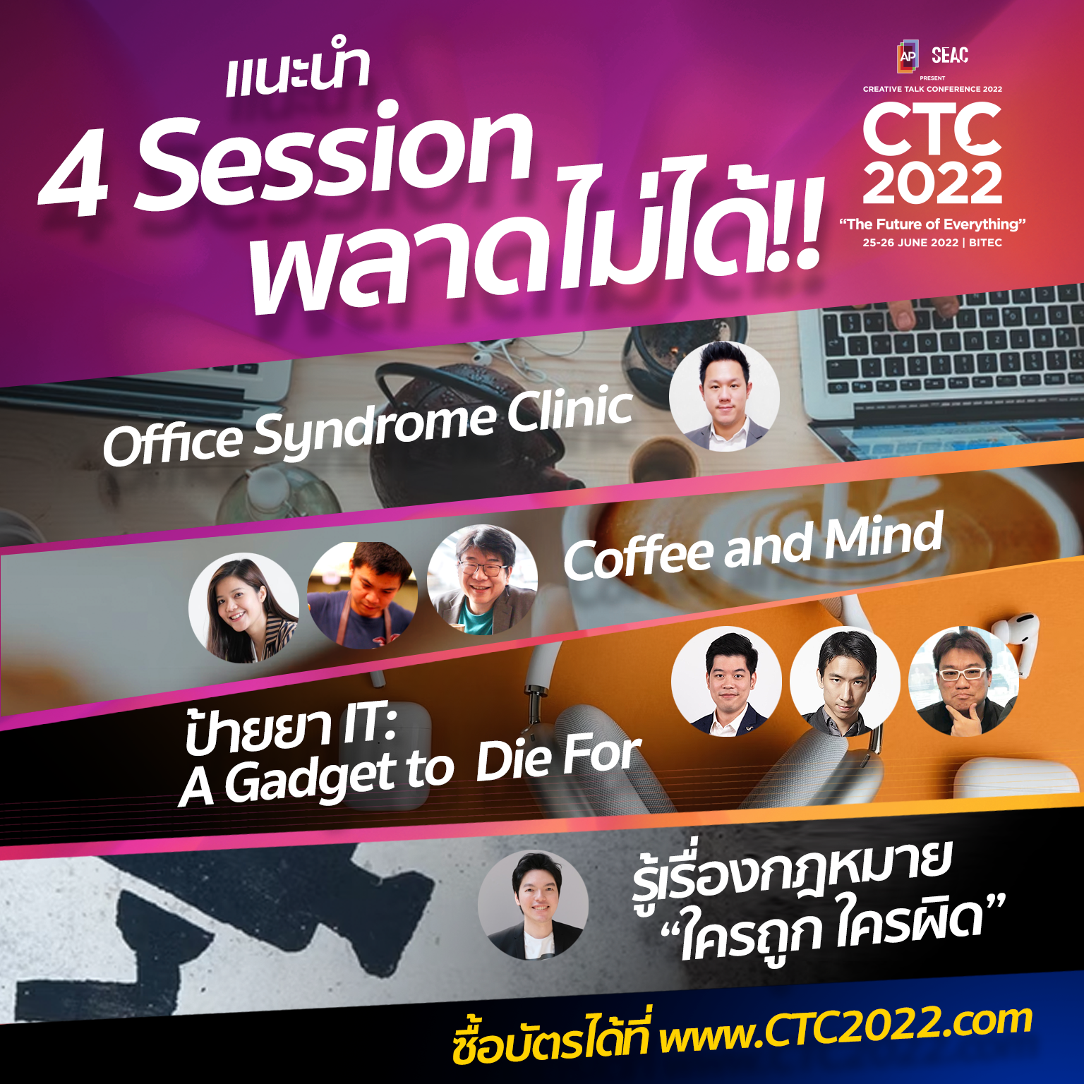 เพราะความคุ้มค่าของการมางาน #CTC2022 นอกจากจะได้มองไปข้างหน้าด้วยกันกับทุกสิ่งในกระแสธุรกิจและชีวิตรอบตัวคุณแล้ว ยังมีเซสชันเด็ด ๆ ในงานที่หาไม่ได้จากที่ไหนอีกมาให้ฟังกันด้วย