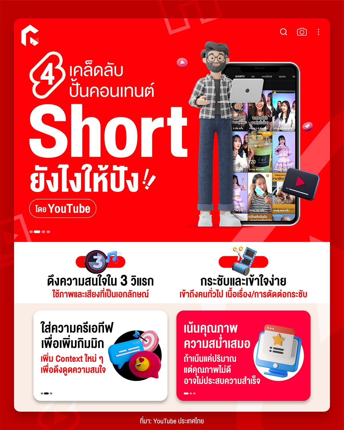 4 เคล็ดลับ ปั้นคอนเทนต์ Shorts ยังไงให้ปัง โดย YouTube