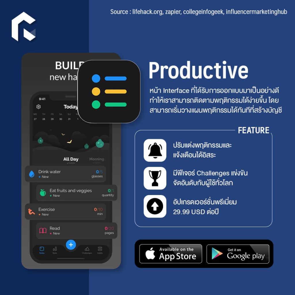 ทั้งนี้ ขึ้นอยู่กับแต่ละคนว่าต้องการพัฒนาตัวเองในด้านไหน เช่น การออกกำลังกาย การอ่าน การดื่มน้ำ รวมไปถึงการเข้านอนตรงเวลา สำหรับใครที่กำลังเริ่มต้นขอแนะนำว่าให้เริ่มทีละ 2-3 พฤติกรรม โดยก่อนอื่นไปดูจุดเด่นของแต่ละแอปฯ กันเลย!