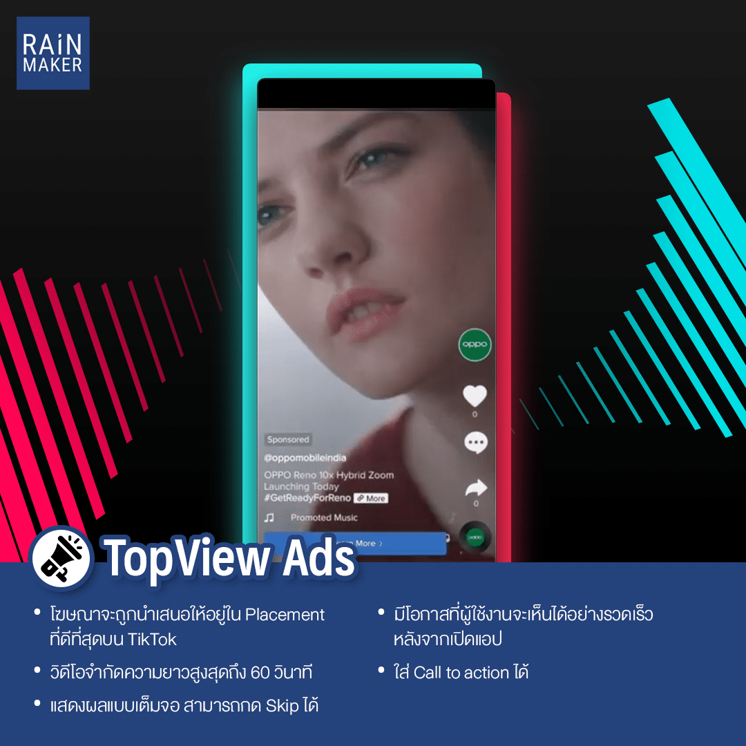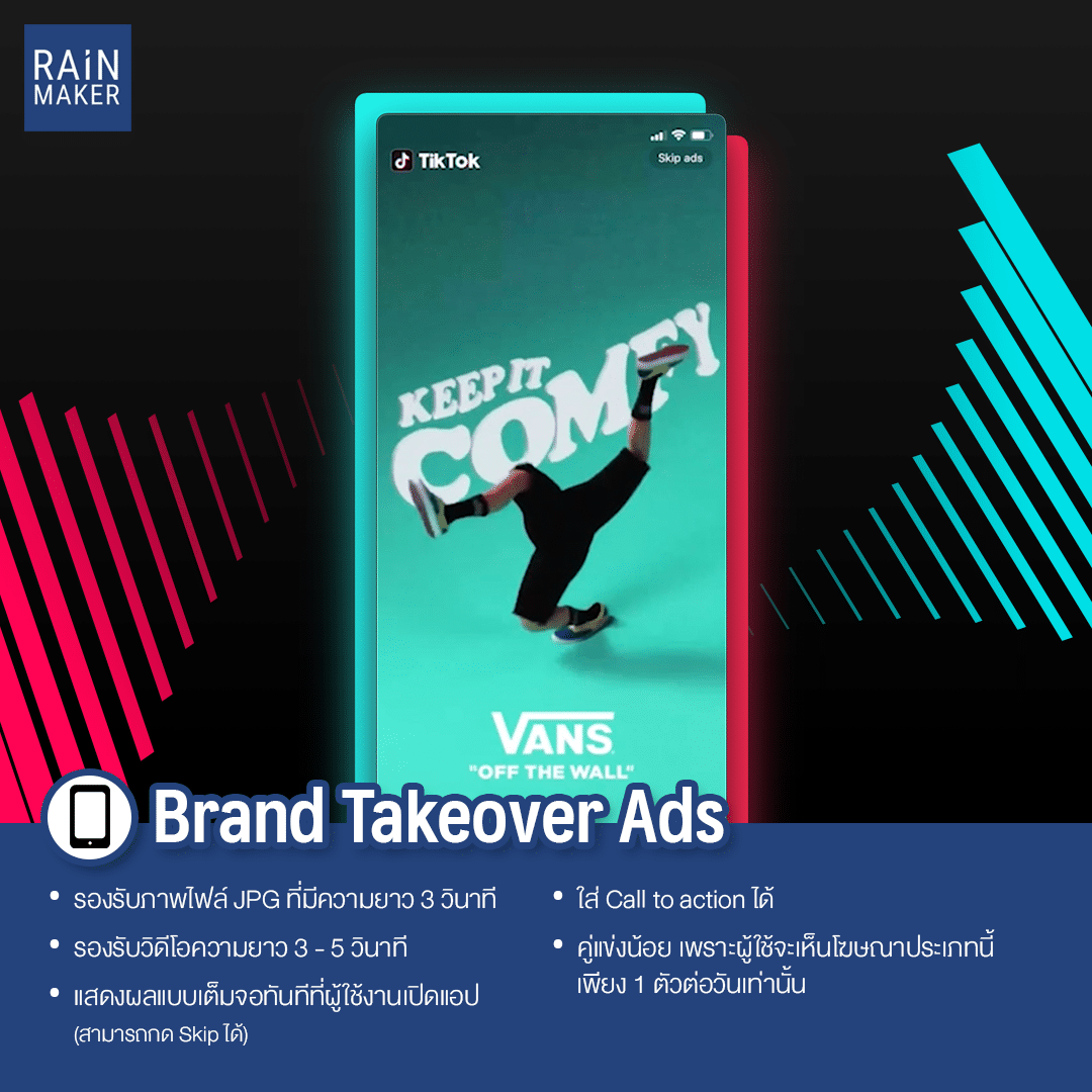 ต่อมาโฆษณาที่เราพบเจอได้บ่อยๆ เพราะจะแสดงขึ้นมาแรกๆ หลังจากเปิดแอปขึ้นมา เพราะโฆษณาประเภทนี้จะนำเสนอแบรนด์ให้อยู่ใน Placement หรือตำแหน่งที่จะแสดงโฆษณาที่ดีที่สุดบน TikTok แบบเต็มจอที่จะช่วยให้ผู้ใช้งานต้องหยุดให้ความสนใจทั้งกับภาพและเสียงอย่างแน่นอน