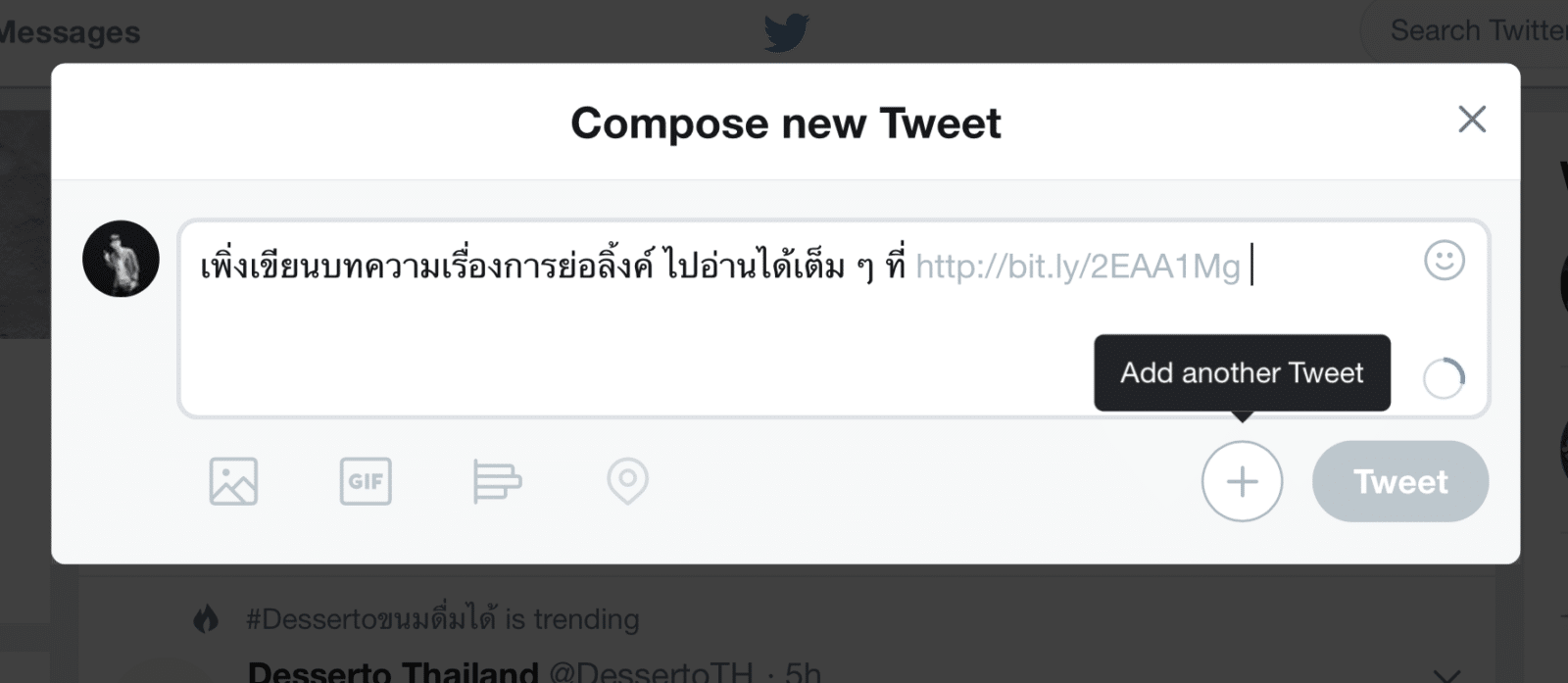 อีกหนึ่ง Social Network ที่เหมาะกับลิ้งค์ที่ผ่านการย่อมาก ๆ เลยก็ตือ Twitter ซึ่งเราจถูกจำกัดตัวอักษร ดังนั้นถ้าใช้ลิ้งค์ยาว ๆ ก็จะทำให้ Tweet ของเราดูไม่ Clean และเหลือพื้นที่สำหรับพิมพ์ข้อความน้อย