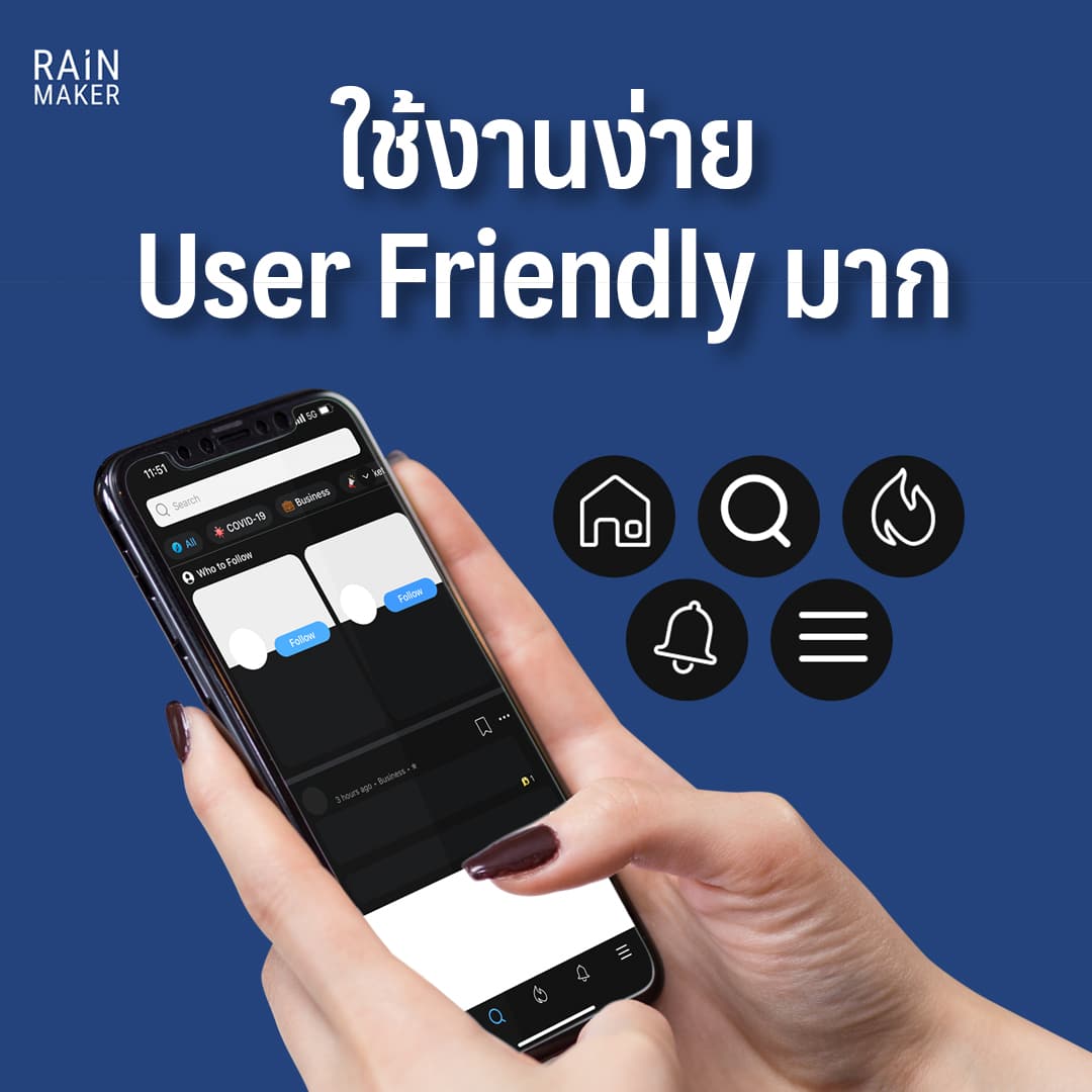 หน้าตาของ Blockdit ใช้งานง่ายมาก ซึ่งแอปออกแบบมาให้มีความ User Firendly สูง และมีคำนึงถึงการใช้งานของผู้อ่านที่คล่องตัว เปิดแอปมาก็ไม่ซับซ้อน เพราะมีการวางไอคอน และการคำนึงถึงประสบการณ์ การใช้งานโซเชียลมีเดียของผู้อ่านเป็นหลักว่าคุ้นเคยกับรูปแบบไหน ทำอย่างไรให้ใช้งานได้ไม่สะดุด โดยจะแบ่งออกมาเป็น