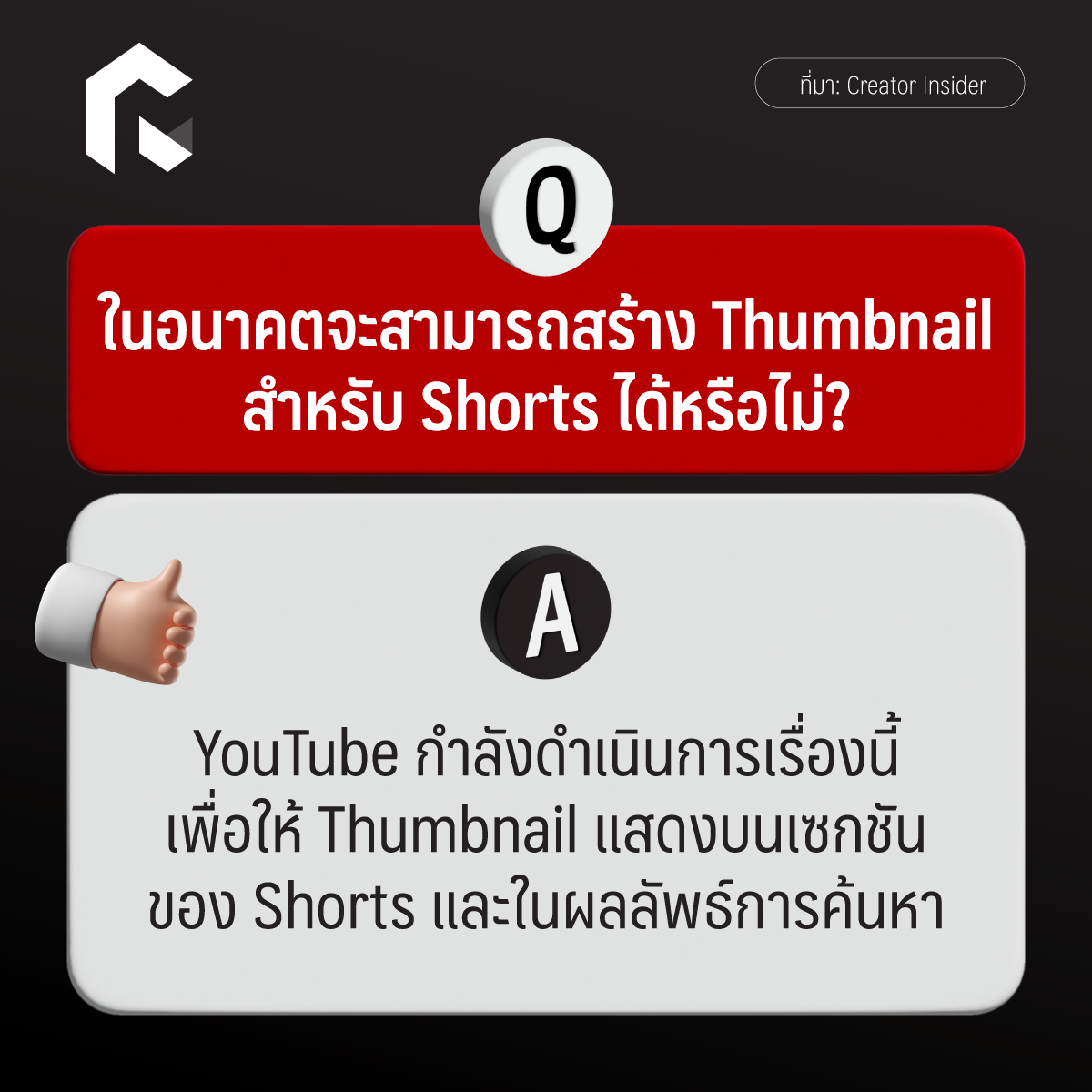 Q: ในอนาคตจะสามารถสร้าง Thumbnail สำหรับ Shorts ได้หรือไม่?