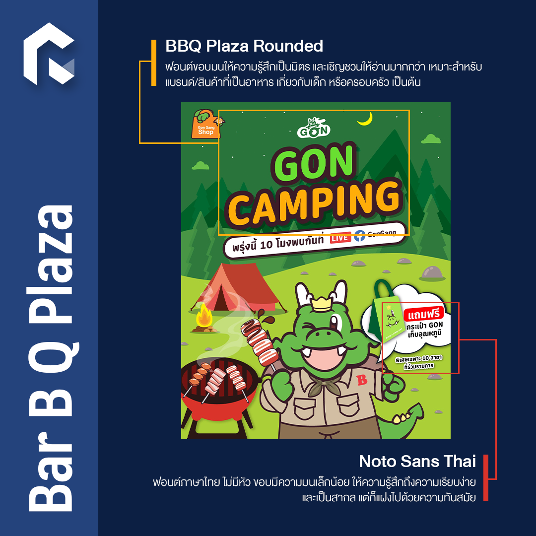 ด้วยบุคลิกขี้เล่น และเป็นกันเอง จึงเลือกใช้ฟอนต์ขอบมน และเชิญชวนให้อ่าน ที่สำคัญฟอนต์ประเภทนี้ยังเหมาะสำหรับแบรนด์ และสินค้าที่เป็นอาหาร เกี่ยวกับเด็ก หรือครอบครัวอีกด้วย