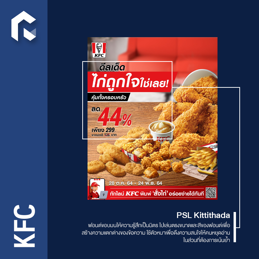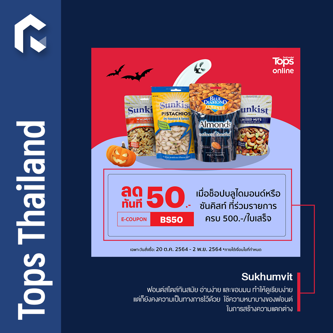จะเห็นว่าแต่ละแบรนด์ที่ยกตัวอย่างมามักเลือกใช้ฟอนต์ไม่เกิน 2 ฟอนต์เท่านั้น แต่จะไปเล่นความแตกต่างตรงขนาด ความหนาบาง และสี เพื่อให้เกิดมิติแทน เนื่องจากหากใช้ฟอนต์หลายชนิดมากเกินไป จะทำให้คนอ่านเกิดความสับสน ไม่รู้ว่าต้องโฟกัสตรงไหนดี แถมยังทำให้งานกราฟิกออกมาคนละทิศคนละทางได้อีกด้วย