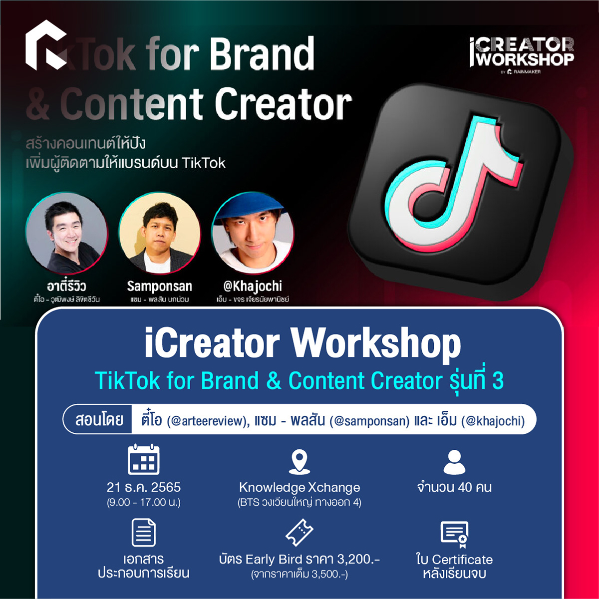 iCreator Workshop : TikTok for Brand & Content Creator รุ่นที่ 3