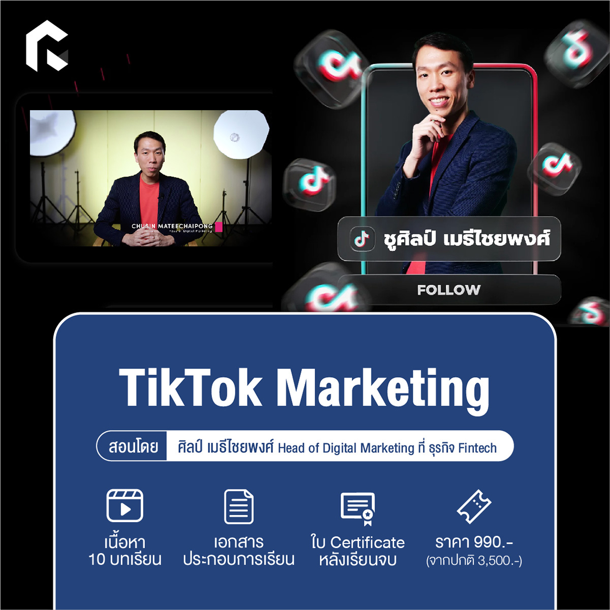 คอร์สที่จะพาไปเรียนรู้พื้นฐาน TikTok ตั้งแต่การหาตัวตน, การวางแผนคอนเทนต์ช่อง, เทคนิคการวาง Storyboard, การกระโดดเข้าไปเล่นกับเทรนด์ และกลยุทธ์การใช้แฮชแท็ก แถมยังครอบคลุมไปถึงเทคนิคการตัดต่อ และการไลฟ์สดอีกด้วย เรียกว่าเรียนรู้ทุกขั้นตอน เพื่อสร้างตัวตน หรือสร้างแบรนด์ ให้ช่อง TikTok ดังและหาเงินได้