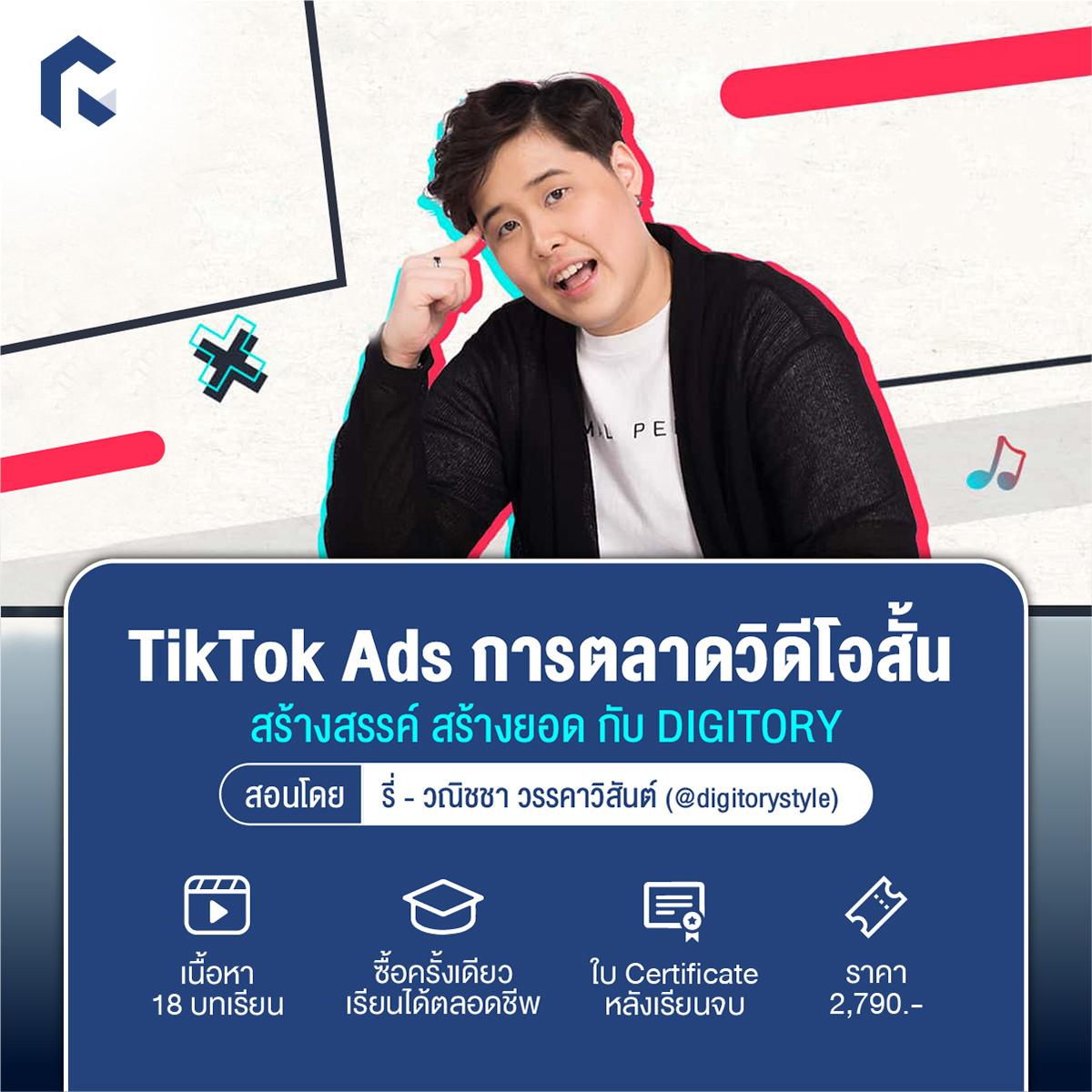 ศึกษารายละเอียดเพิ่มเติมได้ที่: https://digitorystyle.com/product/online-course-tiktok-ads/