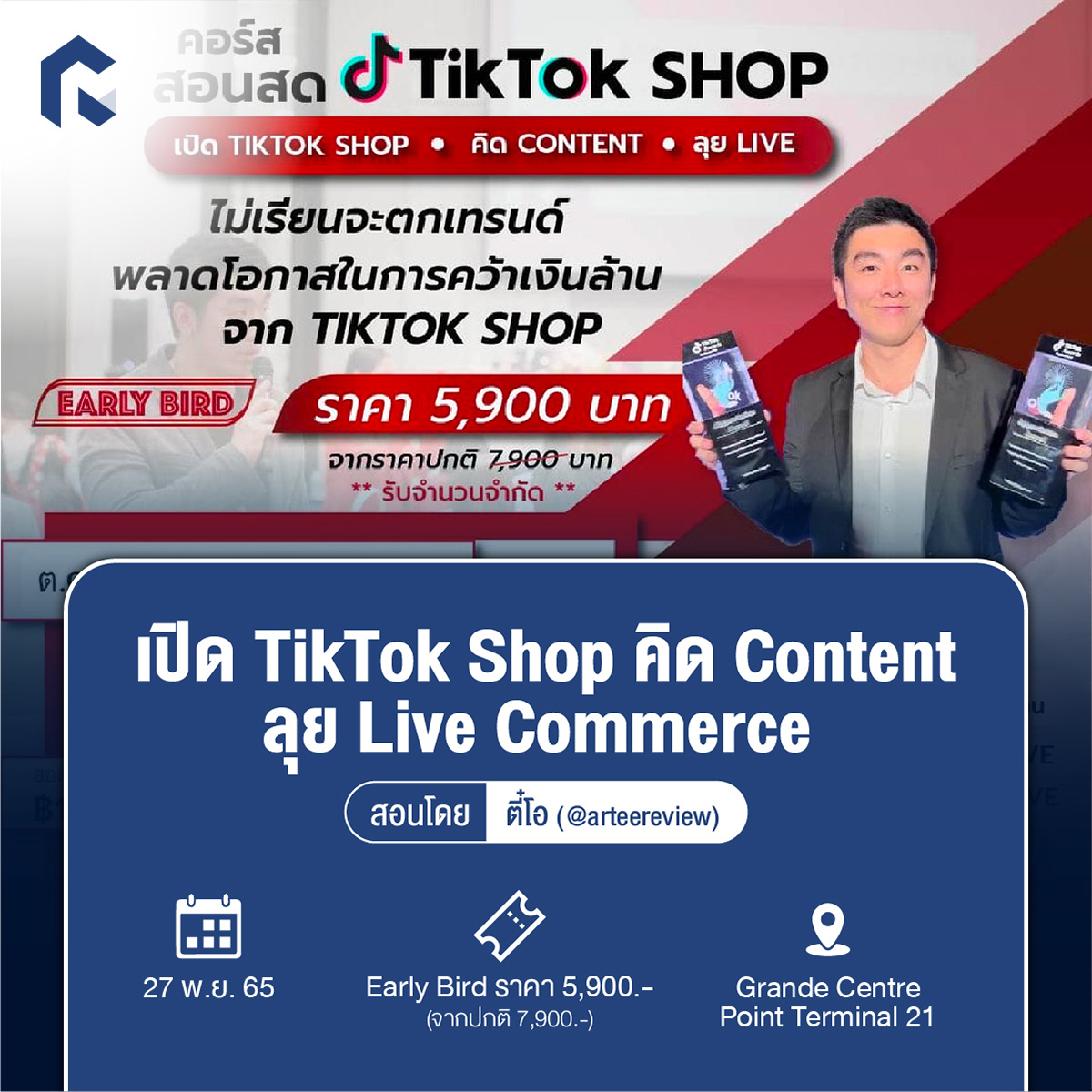 คอร์สสอนสดเกี่ยวกับ TikTok Shop ฉบับจับมือทำกับตี๋โอ ผู้ที่ติดอันดับ Top Creator TikTok Shop LIVE และสร้างยอดขายได้กว่า 1 ล้านบาทภายในไลฟ์ ที่จะมาสอนตั้งแต่การเปิด TikTok Shop, หลักการการทำคลิปให้น่าสนใจและขายของได้ รวมถึงเทคนิคการไลฟ์สด ขายของ ฉบับมือถือเครื่องเดียวกับสร้างยอดได้