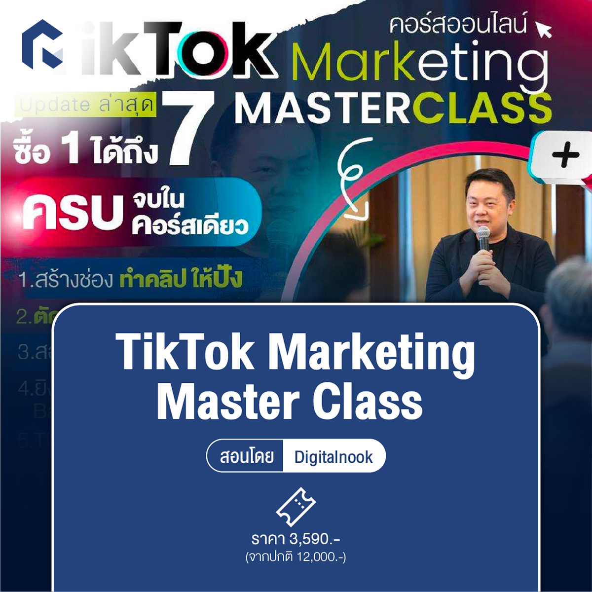 เรียนรู้เกี่ยวกับ TikTok ทุกแง่มุมแบบ 360 องศา ตั้งแต่การทำสร้างช่อง, ทำคอนเทนต์, ตัดต่อวิดีโอด้วย Capcut, การสร้าง Salepage, การยิงแอดแบบเบสิก-แอดวานซ์ ไปจนถึงการใช้งาน TikTok Shop และ TikTok Shop Live