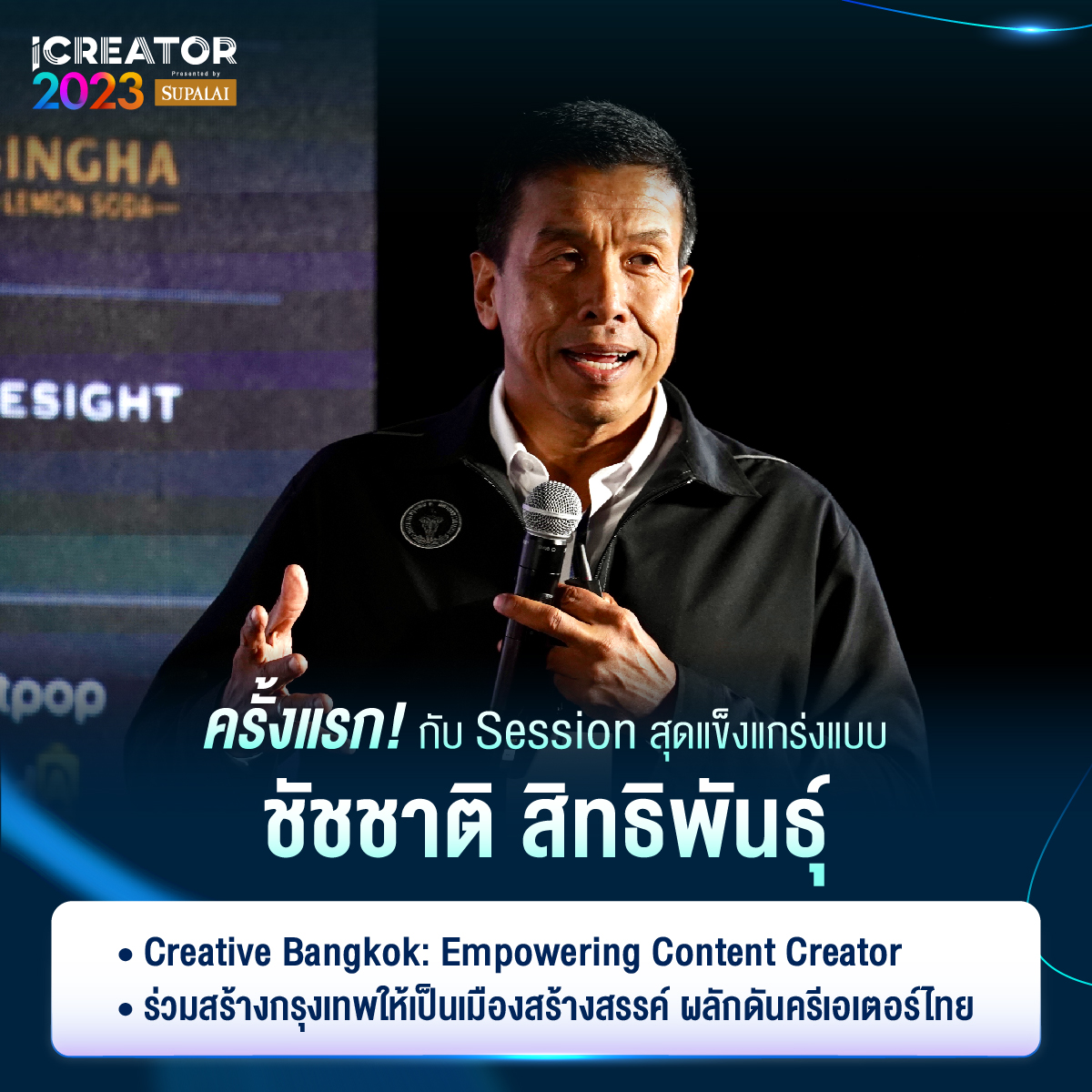 เนื่องจากภายในงาน iCreator Conference 2023 นั้น มีหัวข้อ และ Speaker mี่หลากหลายมาก ซึ่งในปีนี้ก็ได้มีการพูดถึงอนาคตของกรุงเทพฯ ด้วย ว่าจะเป็นเมืองสร้างสรรค์ หรือมีการผลักดันวงการครีเอเตอร์ไทยด้านไหนบ้าง โดย Speaker สุดแข็งแกร่งในเซสชันนี้ก็ไม่ใช่ใครที่ไหน แต่เป็นชัชชาติ สิทธิพันธุ์ ผู้ว่าราชการกรุงเทพมหานครมาพูดอัปเดตให้ฟังสด ๆ ร้อน ๆ เลยทีเดียว