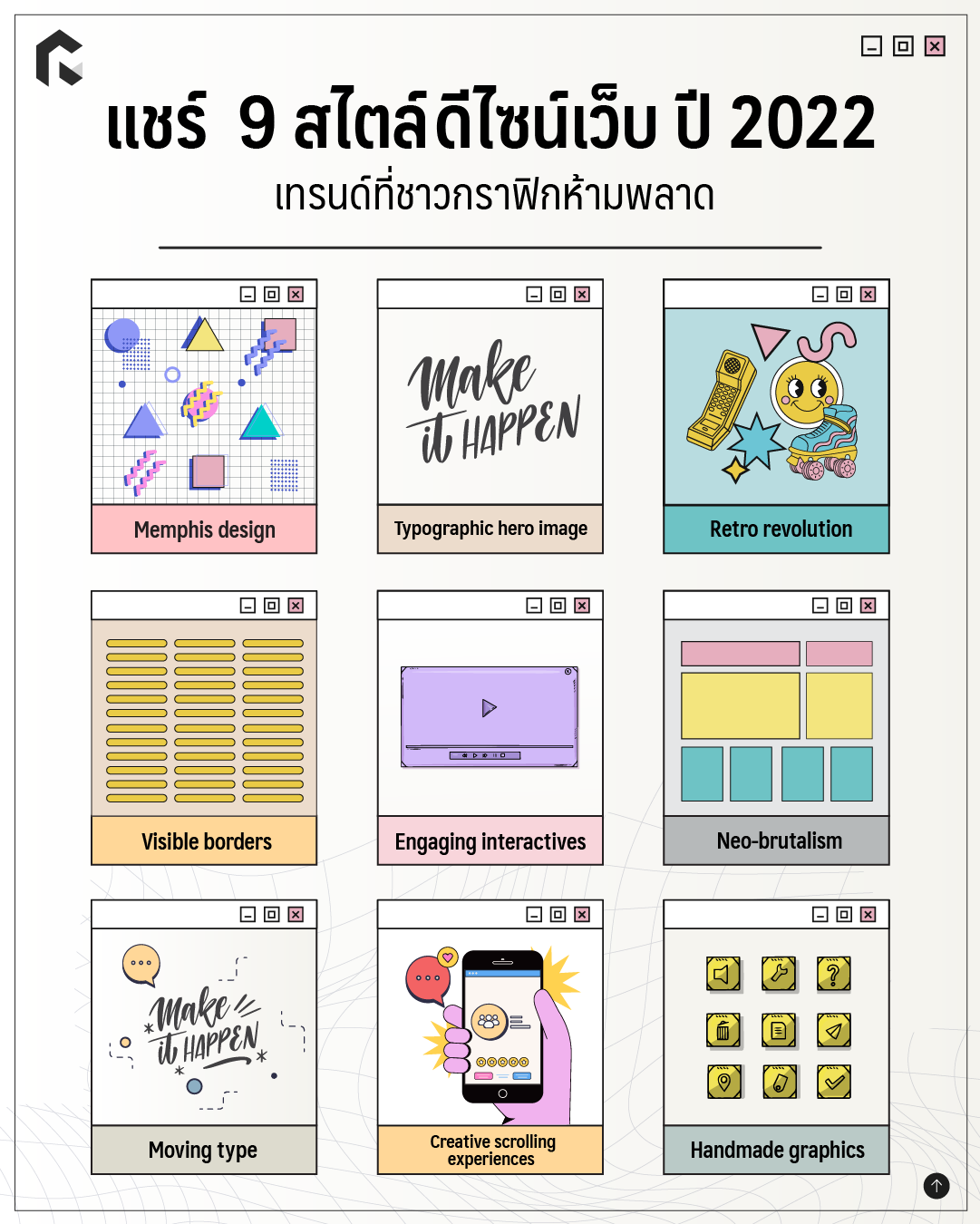 Web Design เป็นองค์ประกอบสำคัญที่ทำให้องค์กร แบรนด์หรือแม้แต่เว็บโปรไฟล์ต่าง ๆ สามารถบ่งบอกถึงเอกลักษณ์ได้ รวมถึงสร้างภาพจำ และดึงดูดกลุ่มเป้าหมายให้อยากกลับมาหน้าเว็บได้ด้วยนะ ทาง RAiNMaker เลยมีกราฟิก 9 สไตล์สำหรับดีไซน์เว็บมาฝาก เพื่อให้ทันเทรนด์ปี 2022 นี้จ้า!
