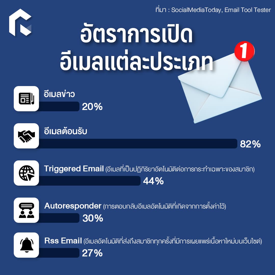 อัตราการเปิดอีเมลแต่ประเภท