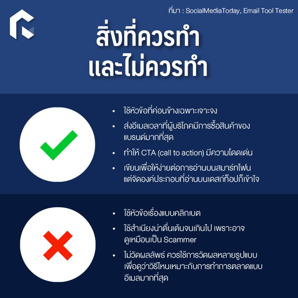 - ไม่วัดผลลัพธ์ ควรใช้การวัดผลหลายรูปแบบเพื่อดูว่าวิธีไหนเหมาะกับการทำการตลาดแบบอีเมลมากที่สุด