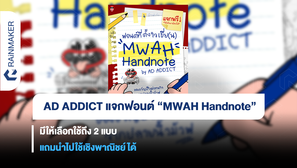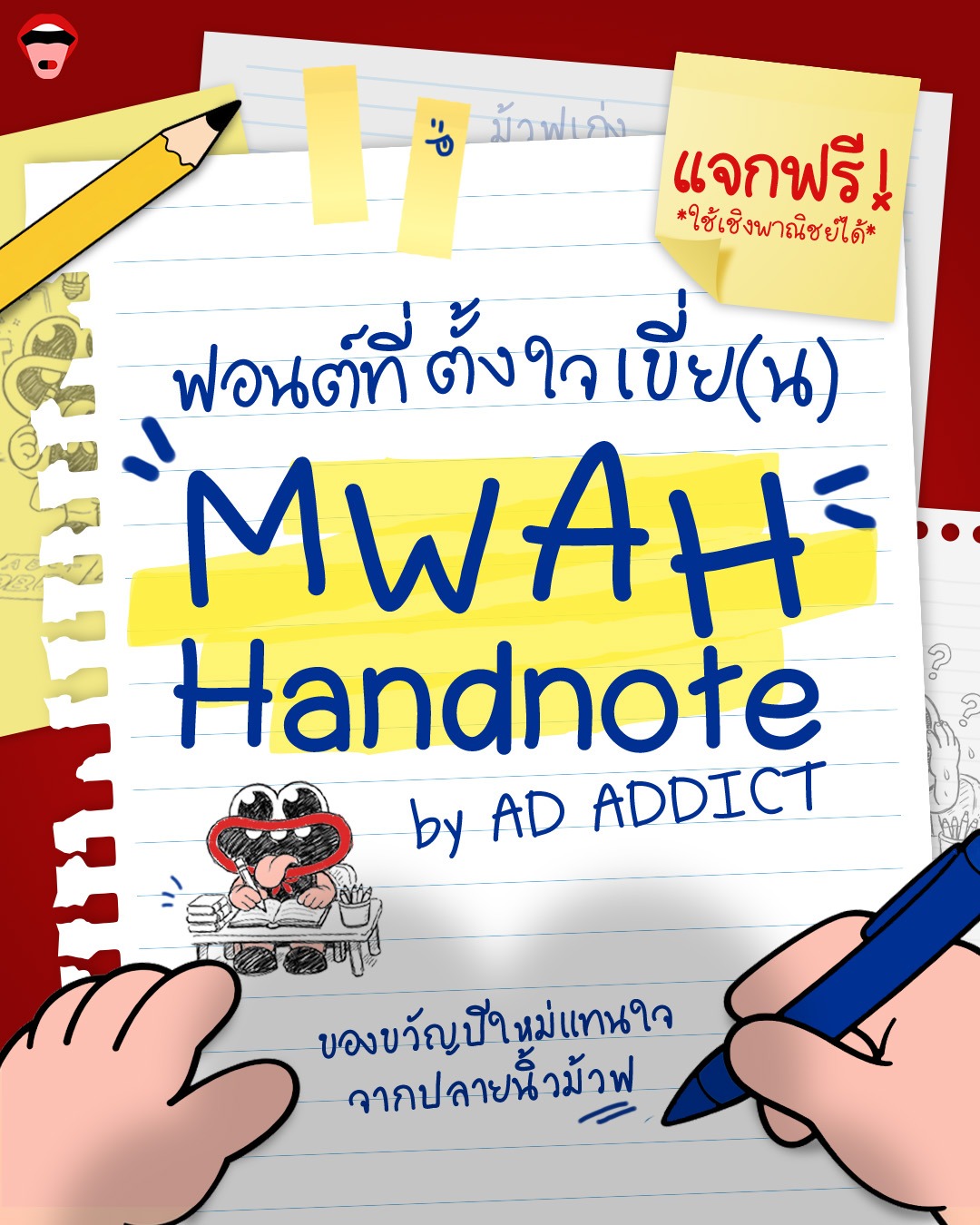 สำหรับใครที่สนใจฟอนต์ MWAH Handnote by AD ADDICT เพียงแค่กดติดตามเพจ AD ADDICT และตอบแบบสอบถามเพื่อดาวน์โหลดฟอนต์ได้ที่ https://rebrand.ly/38c8af