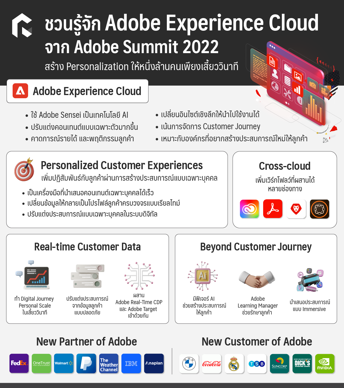 นอกจากการเปิดตัวถึงนวัตกรรมใหม่ ๆ แล้ว Adobe ยังได้เผยถึงพาร์ทเนอร์ และลูกค้าใหม่ที่เข้ามามีส่วนร่วมกับการใช้เครื่องมือต่าง ๆ ในการทำธุรกิจด้วย ดังนี้