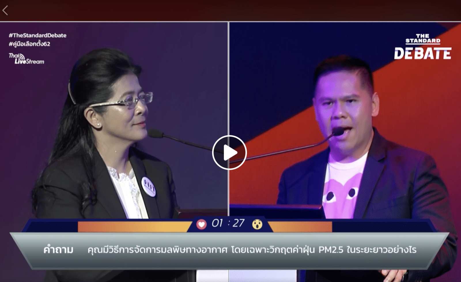 และสุดท้ายคือการตอบคำถามจากทางบ้าน ซึ่งก็เป็นการเลือกประเด็นผ่าน # บน Social Media ต่าง ๆ มาตอบ สุดท้ายก็มีประเด็นต่าง ๆ ที่สามารถนำมาเป็นบทสนทนาต่อออนไลน์ได้  โดยพิธีกรในการจัดดีเบตครั้งนี้คือคุณ ต๊ะ พิภู ที่เราคงจะเห็นกันบ่อยใน Live ของ The Standard อยู่แล้ว หลายคนก็ชมว่าคุณต๊ะทำหน้าที่ได้สนุกสนานเลยทีเดียว