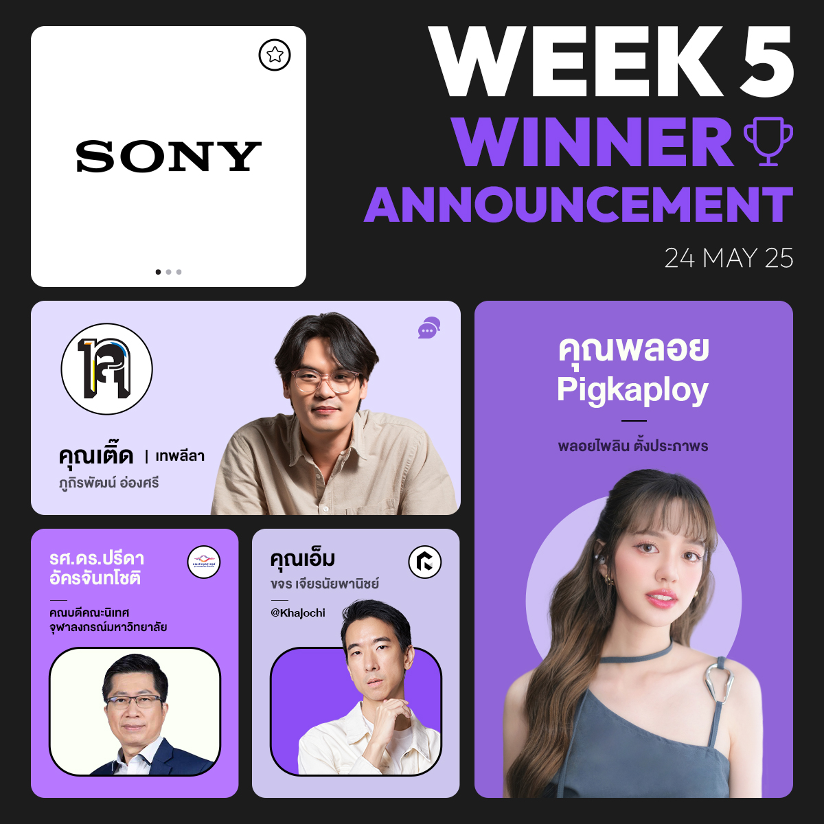 เข้าสู่สัปดาห์สุดท้ายหลังจบการ Lecture และ Workshop สัปดาห์นี้เป็นช่วงเวลาแห่งการประกาศผลผู้ชนะประจำ iCreator Camp Gen 2 Presented by SONY พร้อมรับฟัง Inspiration Talk จากครีเอเตอร์ผู้มากประสบการณ์ในวงการ 2 ท่าน ที่จะมาแชร์ประสบการณ์ในเส้นทางครีเอเตอร์ เพื่อจุดประกายแรงบันดาลใจให้ครีเอเตอร์ทั้ง 100 คนได้มีไฟสู้ในการเดินทางตามความฝันสู่การเป็นท็อปครีเอเตอร์
