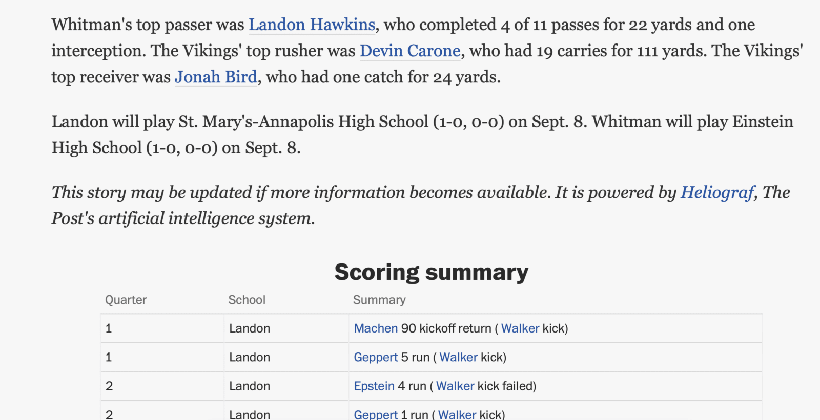 Heliograf ตัวอย่าง AI นักเขียนคอนเทนต์