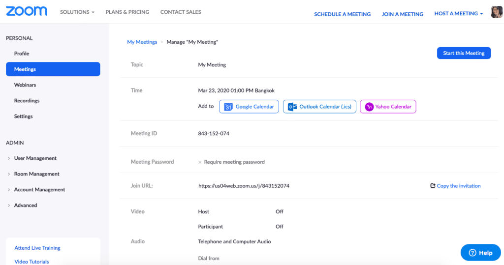 4. กรอกข้อมูลที่ต้องการให้เรียบร้อย จากนั้นกด Save แล้วเราจะได้ Meeting ID ขึ้นมา นำเลขนี้ไปให้แก่คนที่คุณต้องการประชุมด้วยได้เลยค่ะ และในทางกลับกันในกรณีเป็นฝ่ายต้องเข้าร่วมประชุม หากคุณได้เลข Meeting ID สามารถนำไปใส่ตรง Join a Meeting ได้เลยค่ะ