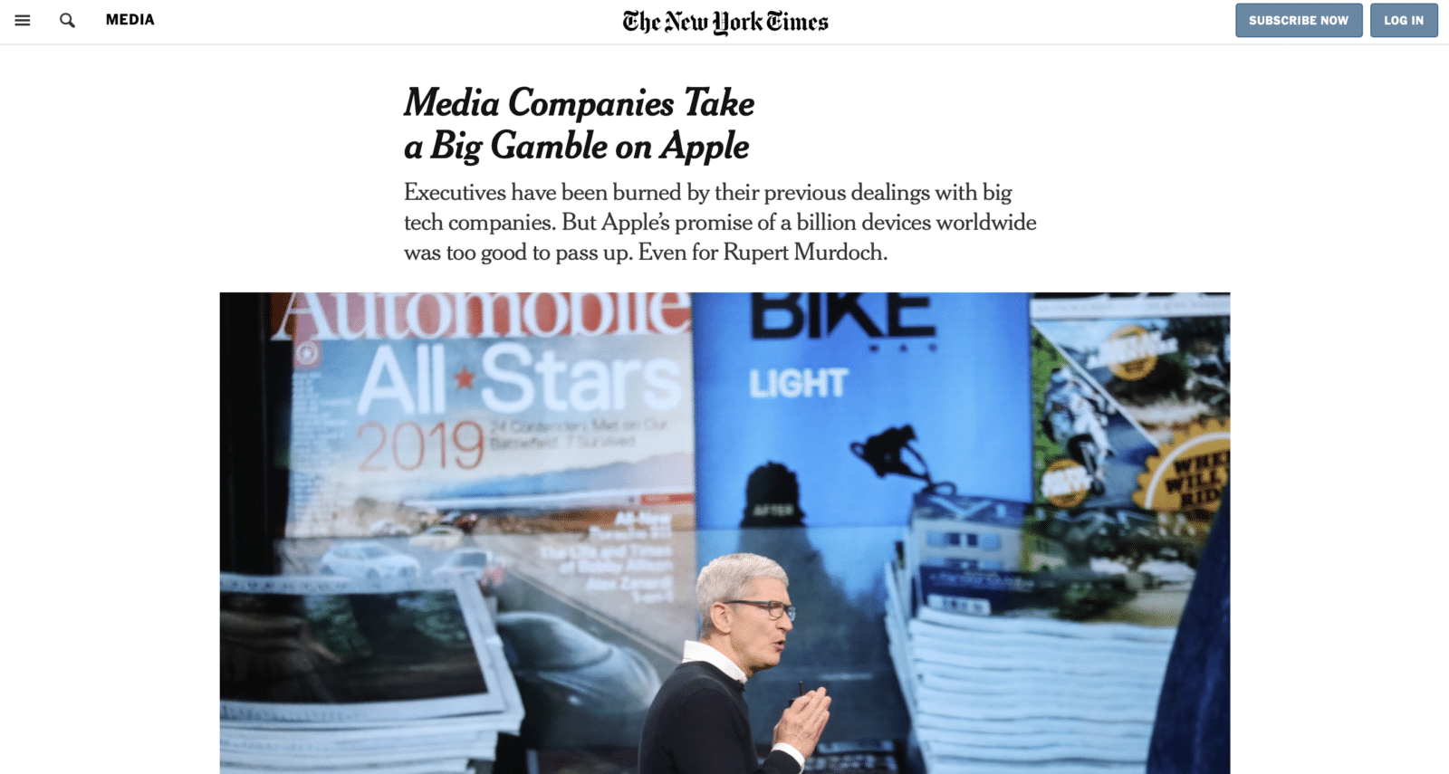 อย่างไรก็ตาม ข้อสังเกตของ The New York Times จากบทวิเคราะห์ด้านบน ก็ดูเหมือนจะไม่ได้เชื่อสนิทขนาดนั้นว่า Apple News+ จะเป็นช่องทางการหารายได้ที่ makesense สำหรับ Publisher ซึ่ง New York Times เป็นหนึ่งในบรรดาสื่อที่ปฏิเสธดีลของ Apple ไม่ยอมนำคอนเทนต์มาลงใน Apple News+ โดยสื่ออื่น ๆ ที่ทำแบบนี้ก็เช่น The Washington Post ในขณะที่สื่อใหญ่ ๆ ในทำนองเดียวกันอย่าง Wall Street Journal และ Bloomberg กลับกลายเป็น Killing Feature ที่ Apple ภูมิใจนำเสนอว่าอยู่บน Apple News+
