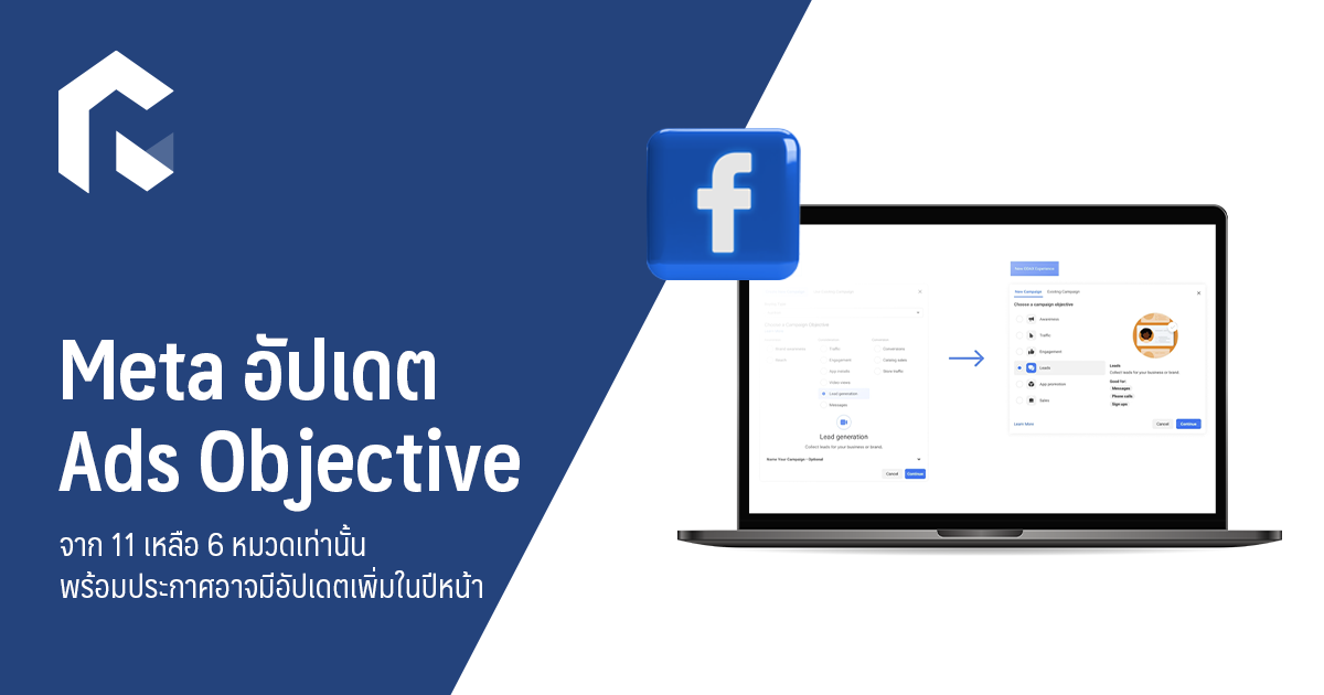 Meta อัปเดตลิสต์วัตถุประสงค์ของโฆษณา (Ads Objective) ใน Ads Manager เพื่อปรับปรุงประสิทธิภาพและให้การสร้างแคมเปญง่ายขึ้น โดยโฟกัสที่ตัวเลือกและเครื่องมือที่มีความเกี่ยวข้องและใช้ได้จริงมากกว่าเดิม