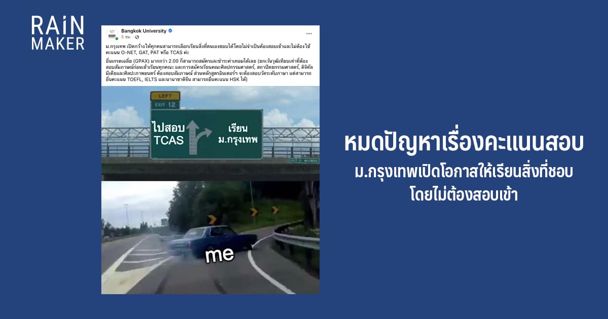 ใครอยากเรียนคณะที่ชอบ แต่ติดปัญหาเรื่องคะแนนสอบต่างๆ ไม่ว่าจะเป็น O-NET, GAT, PAT หรือ TCAS ตอนนี้ม.กรุงเทพมีข่าวดี ไม่จำเป็นต้องใช้คะแนนการสอบเข้า เพื่อสนับสนุนให้ทุกคนสามารถเลือกเรียนสิ่งที่ตนเองชอบได้