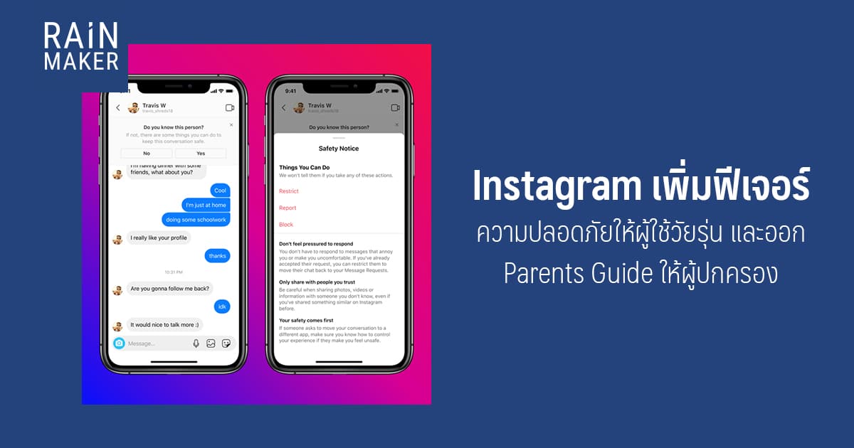 อินสตาแกรมออกแบบฟีเจอร์ใหม่เพื่อปกป้องผู้ใช้ที่อายุน้อยจากผู้ใหญ่ที่มีเจตนาไม่ดี โดยการเพิ่มข้อห้ามในการไม่ให้ผู้ใหญ่ส่งข้อความถึงผู้ใช้ที่มีอายุต่ำกว่า 18 ที่ไม่ได้ติดตามพวกเขา