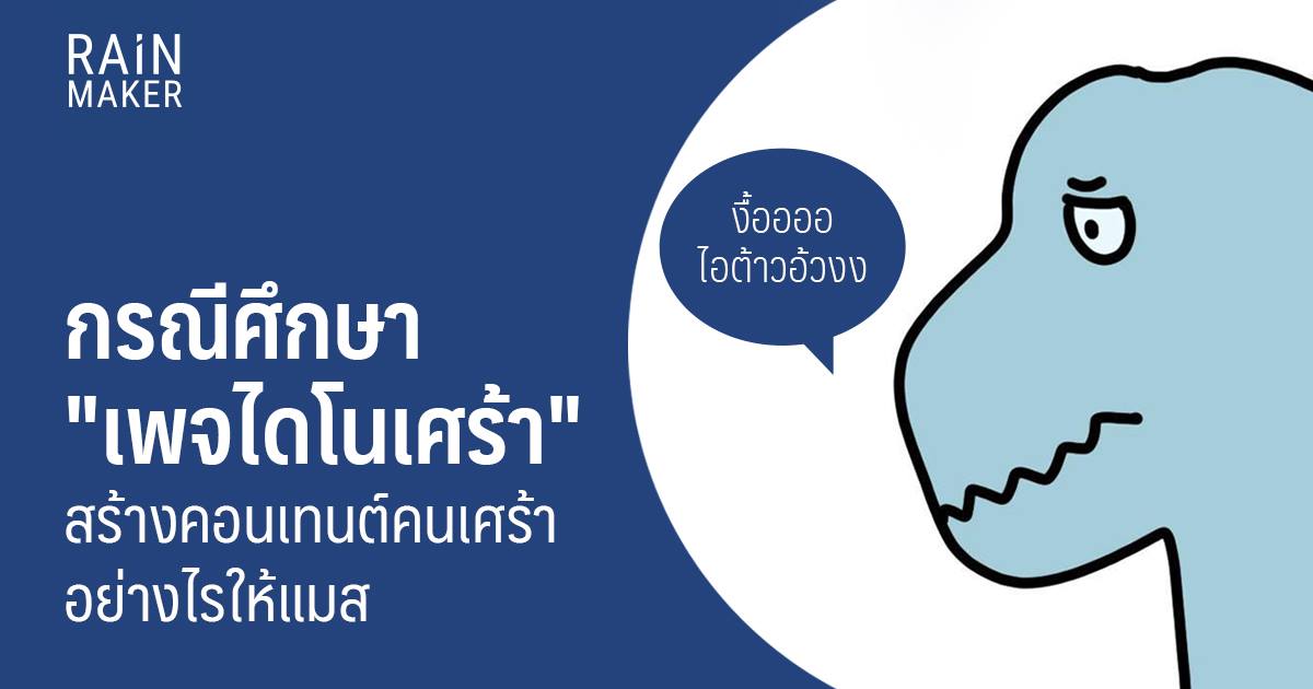 ช่วงนี้หน้าฟีดเฟซบุ๊กหลายคนคงเห็นเพจไดโนเศร้าผ่านตากันมาบ้าง อย่างน้อยก็ต้องสักโพสต์นึงแหละ! โดยเพจไดโนเศร้าเป็นเพจที่เขียนคอนเทนต์กี่ยวกับความรัก ครบทั้งด้านคลั่งรักและด้านเศร้า ที่ดูเหมือนจะเข้าถึงอินไซต์ของคนกลุ่มใหญ่เลยทีเดียว