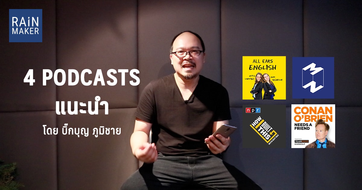 หลังจากจบสัมภาษณ์พี่บิ๊ก หรือ บิ๊กบุญที่ทุกคนรู้จักกัน เรายังไม่ลืมถามว่าตอนนี้พี่บิ๊กนอกจากจัดพอดแคสต์ของตัวเองแล้ว ยังติดตามฟังพอดแคสต์ช่องไหนอยู่บ้าง พี่บิ๊กจึงจัดให้เราเน้นๆมา 4 ช่องด้วยกัน นอกจากเป็น 4 ช่องที่อัดแน่นไปด้วยสาระความบันเทิงแล้ว ยังช่วยฝึกภาษาอังกฤษไปในตัวด้วย