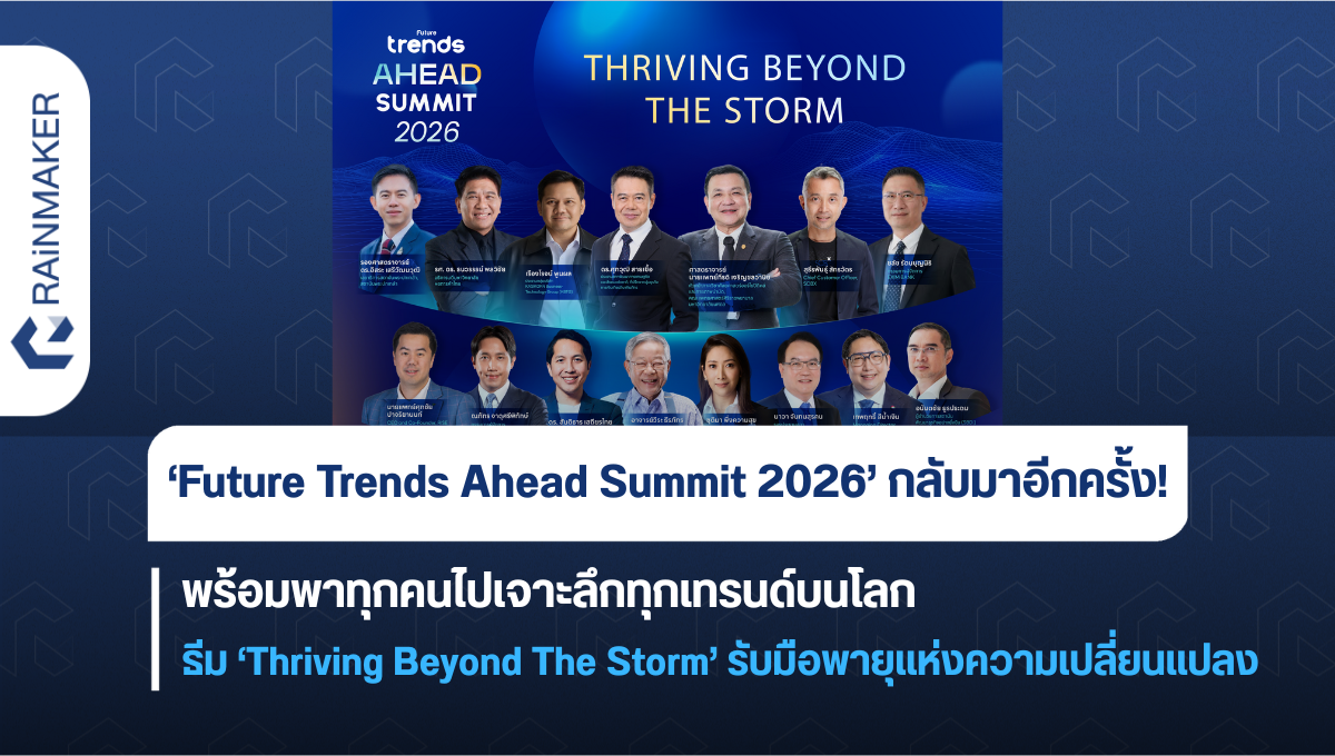 กลับมาอีกครั้ง! กับงานสัมมนาแห่งปี ‘Future Trends Ahead Summit 2026’ ที่จะพาคุณไป เจาะลึกทุกเทรนด์ที่เกิดขึ้นบนโลก ผ่านสถาบันวิจัยระดับประเทศและระดับสากล ที่พร้อมรวมพลังเผยข้อมูลเชิงลึกที่ต้องห้ามพลาด ภายใต้ธีม ‘Thriving Beyond The Storm’ เตรียมรับมือพายุแห่งความเปลี่ยนแปลง ในวันที่ 10 กุมภาพันธ์ 2569 ณ Paragon Hall ชั้น 5 สยามพารากอน