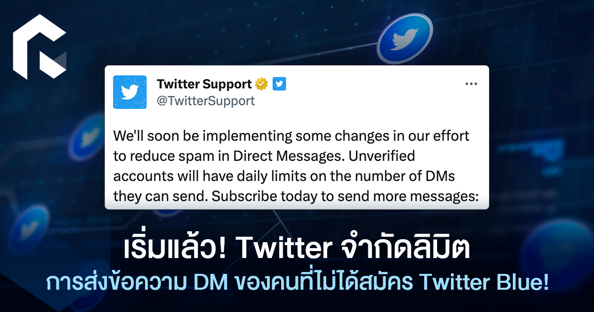 Twitter เริ่มจำกัดการส่งข้อความ Direct Messages เพื่อช่วยป้องกันข้อความสแปมใน DM และขณะเดียวกันก็เร่งผลักดันให้ผู้ใช้ทั่วไปหันมาสมัครสมาชิก Twitter Blue มากขึ้น