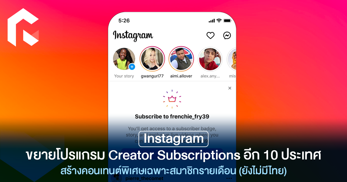 ในอีกไม่กี่สัปดาห์ข้างหน้า Instagram จะขยายโปรแกรม Creator Subscriptions ในอีก 10 ประเทศ ให้ครีเอเตอร์ทำคอนเทนต์สุดพิเศษเฉพาะสมาชิกรายเดือนได้ เพื่อหารายได้บน Instagram