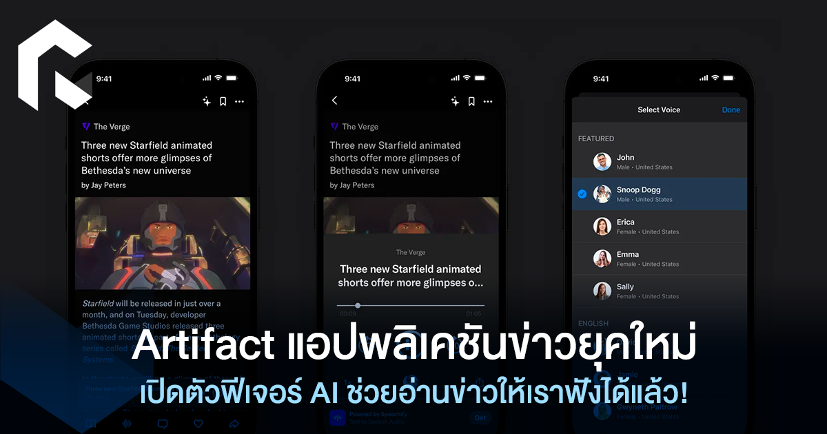 ‘Artifact’ แอปพลิเคชันอ่านข่าวที่สร้างโดยผู้ร่วมก่อตั้ง Instagram ได้เพิ่มฟีเจอร์ AI แบบ Text to speech ซึ่งสามารถแปลงข้อความเป็นคำพูดด้วยการเลียนเสียงคนดัง เพื่อช่วยอ่านบทความให้เราฟังได้แล้ว!