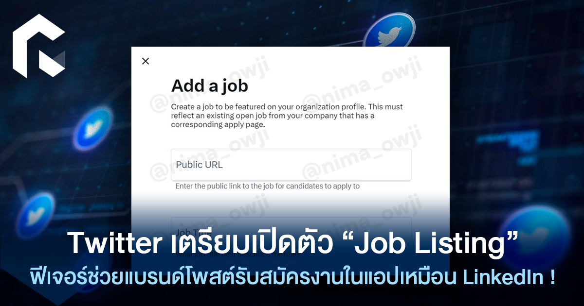 ขณะนี้ Twitter กำลังพัฒนาฟีเจอร์ “Job Listing” ให้บริษัทธุรกิจและแบรนด์ที่ได้รับการยืนยันในแอป สามารถโพสต์รับสมัครงานลงในหน้าโปรไฟล์ Twitter ได้โดยตรง