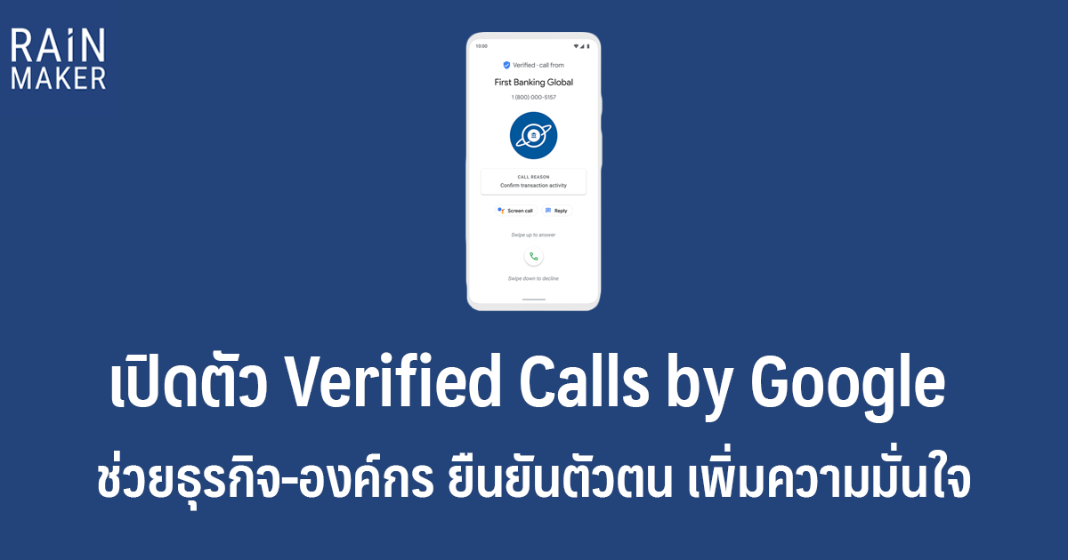 เปิดตัว Verified Calls by Google เพื่อให้ธุรกิจ-องค์กร โทรติดต่อกับลูกค้าได้โดยไม่ต้องกลัวว่าเป็นเบอร์ที่พึงประสงค์หรือสแปม