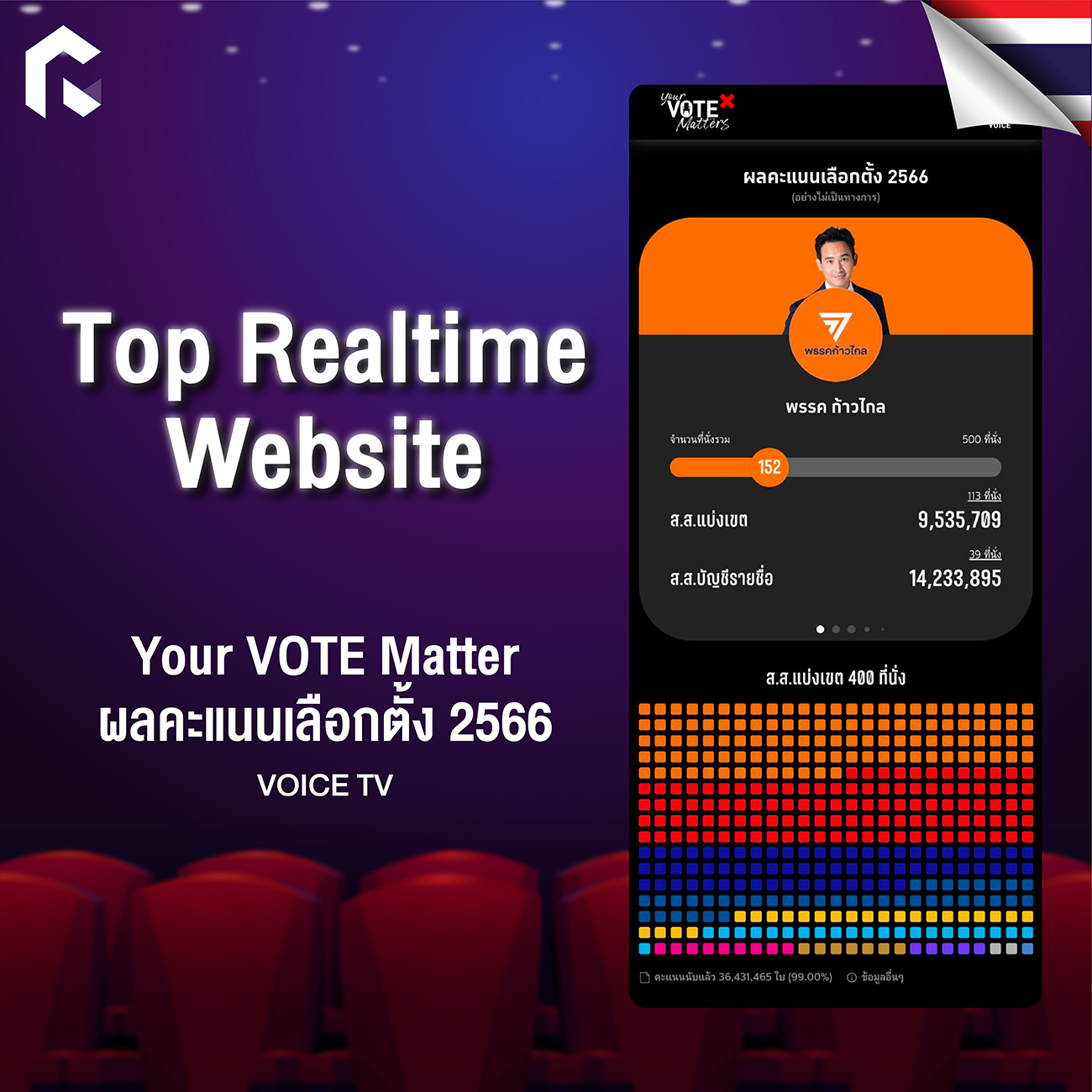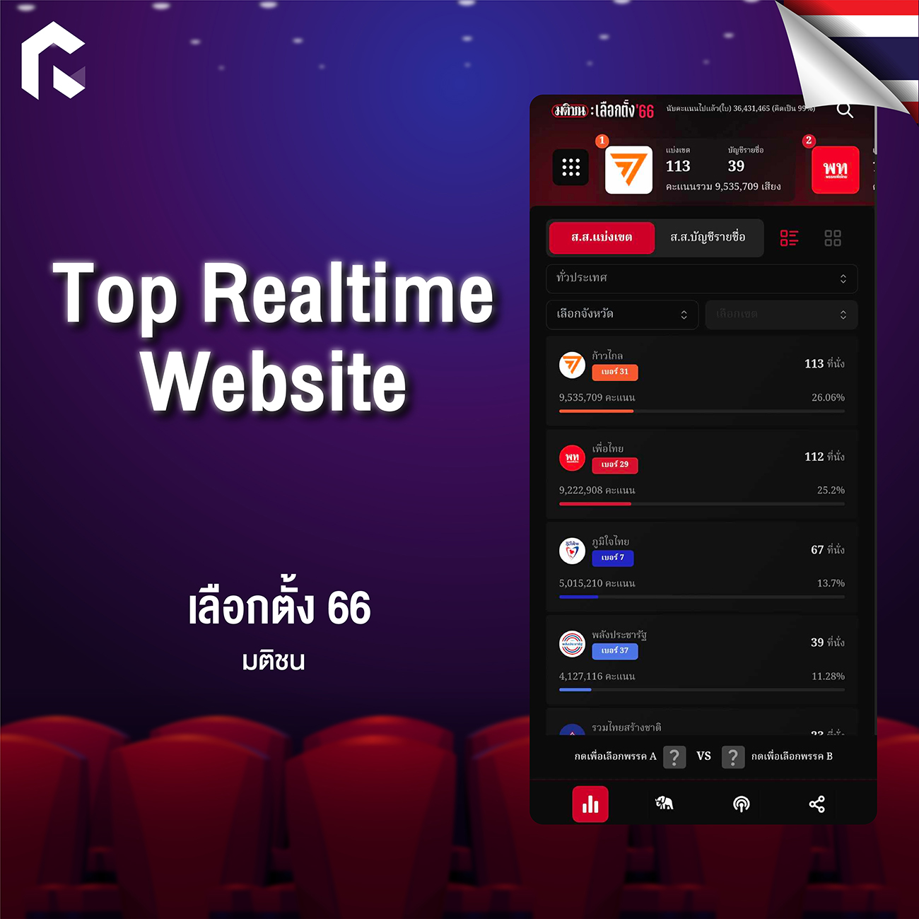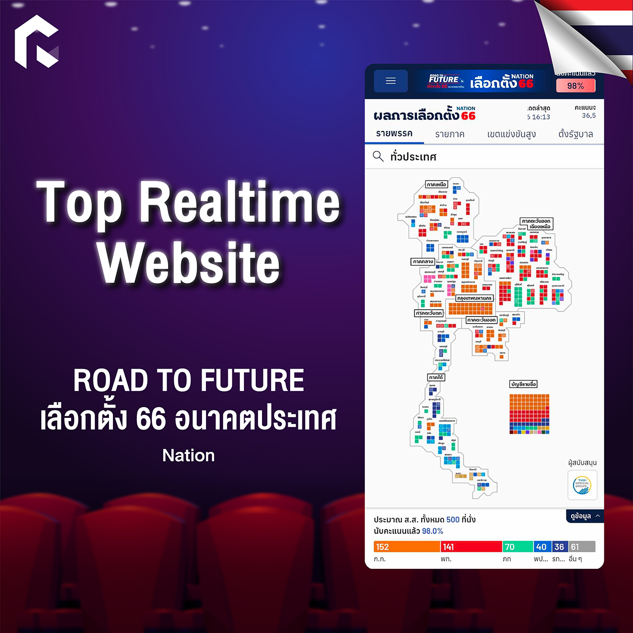 ซึ่งไม่ว่าแต่ละสื่อจะเน้นไปทางไหน ทาง RAiNMaker ก็อยากชื่นชมทุกสื่อที่ตั้งใจจะช่วยให้ประชาชนติดตามผลการเลือกตั้งไปพร้อม ๆ กันได้ แต่สื่อไหนจะได้รับตำแหน่ง “Best Realtime Website” และ “Top Realtime Website” ไปครอง มาดู!