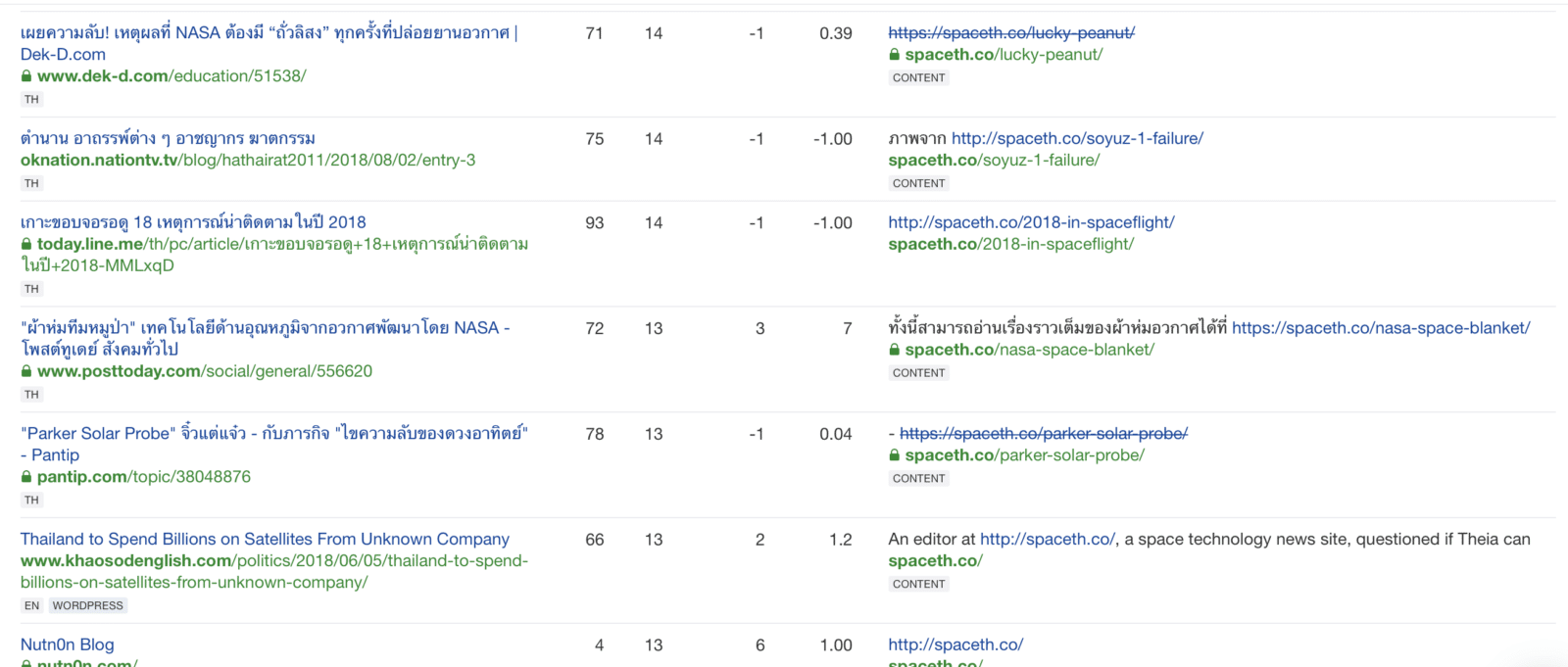 ด้านบนนั้น ระบบก็จะโชว์ Domain Rating ขึ้นมาให้ (เหมือนเป็นการให้คะแนน) และมี จำนวนของ Backlink ที่พบว่ามากเท่าไหร่ และสุดท้ายคือ Referring domains ก็คือจำนวนว่ามีเว็บที่ Backlink กลับมาที่เว็บเรากี่เว็บ