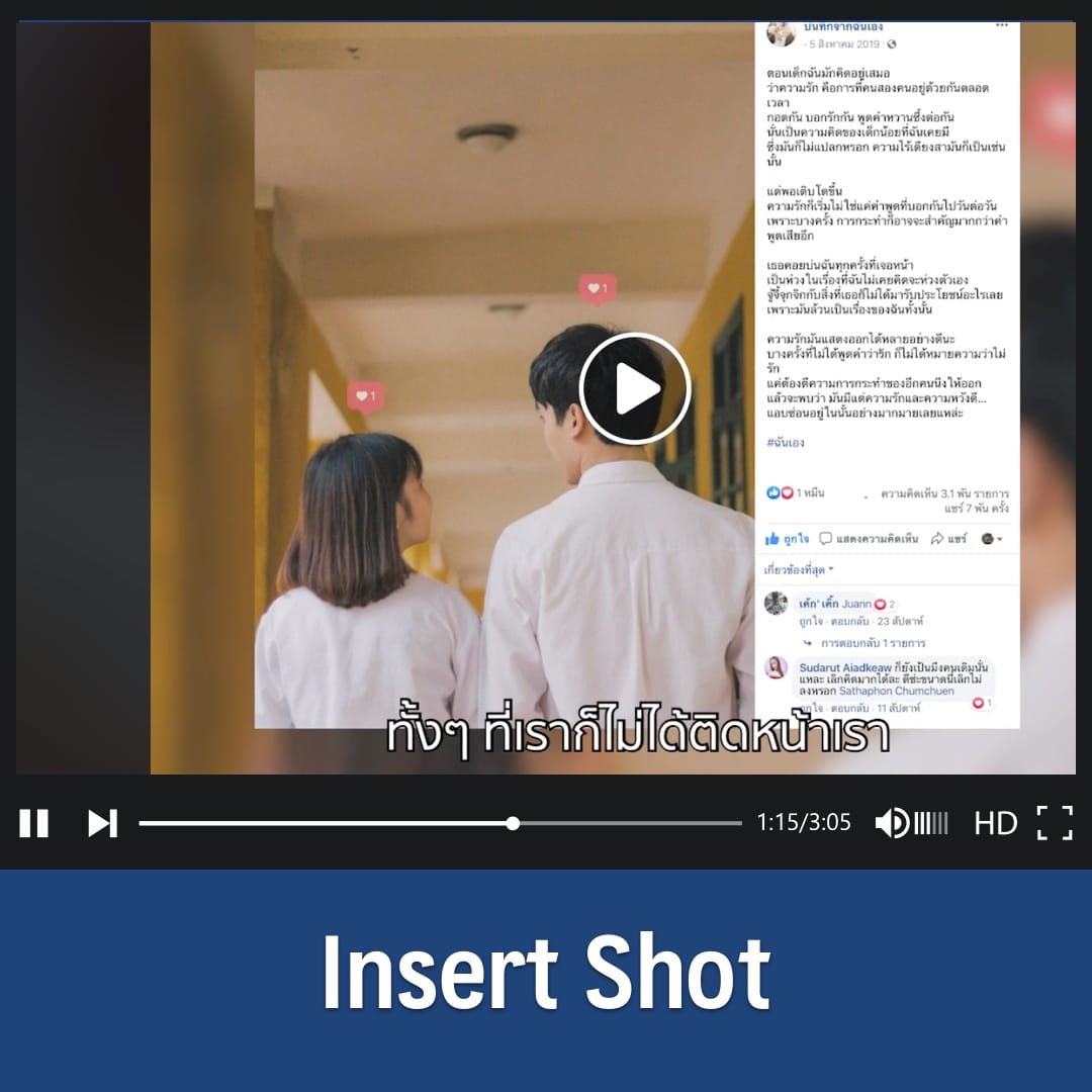การแทรกวิดีโอด้วยวิดีโอที่เป็นเนื้อหาในส่วนที่เกี่ยวข้องกัน เพื่อใช้ในการอธิบายเรื่องราวที่เสียงจากวิดีโอส่วนอื่นกำลังเล่าอยู่ เพื่อให้ผู้ชมเห็นภาพมากยิ่งขึ้น เช่นการเล่าเรื่องด้วยการสัมภาษณ์ยาวๆ มักจะใช้การ insert ด้วยวิดีโออื่นในการอธิบาย นอกจากจะช่วยทำให้เข้าใจเนื้อมากขึ้นแล้ว ยังทำให้วิดีโอไม่น่าเบื้ออีกด้วย